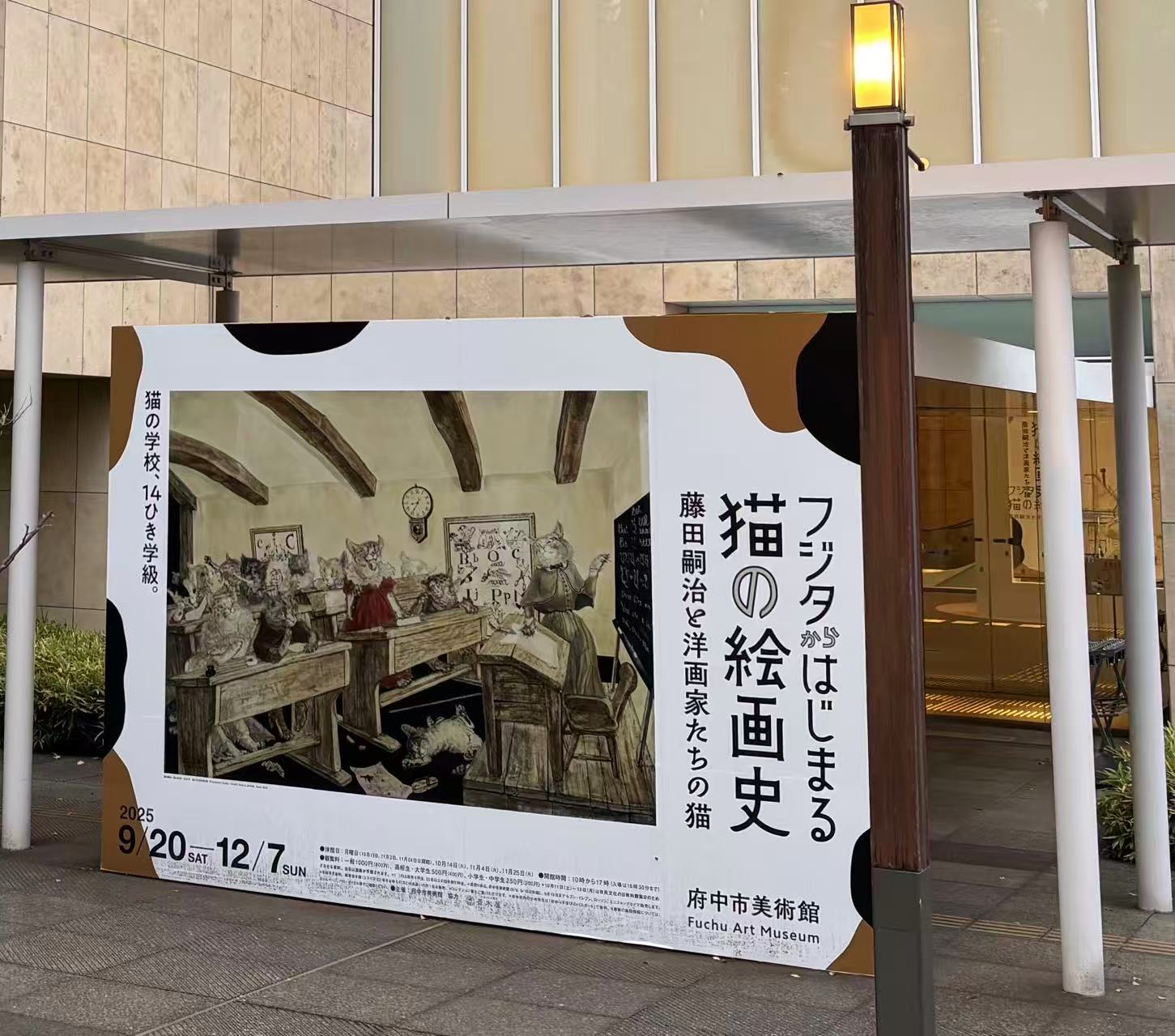 在枫叶红了的时候,在一片银杏树和枫树之间,这里有一座典雅而又大气的美术馆,这就是东京都府中美术馆。此时,美术馆的二楼正在展出世界级的美术大师藤田嗣治的猫画展,而在一楼的展厅里,一场中国书画作品的盛会同时出现在人们的眼前。