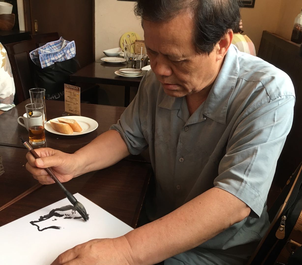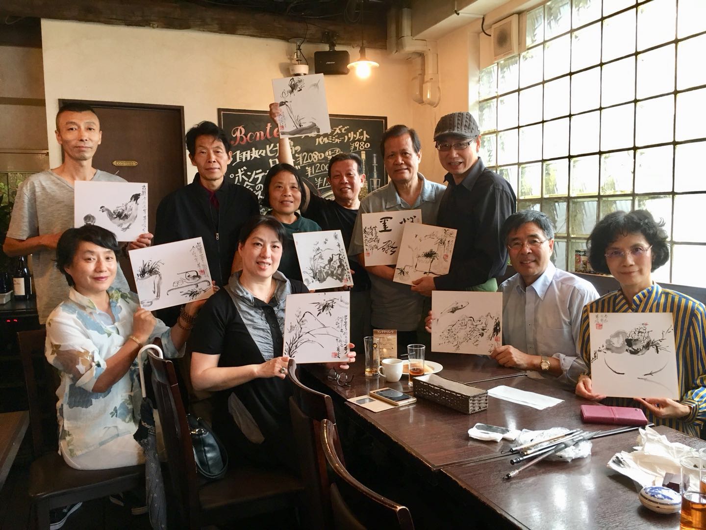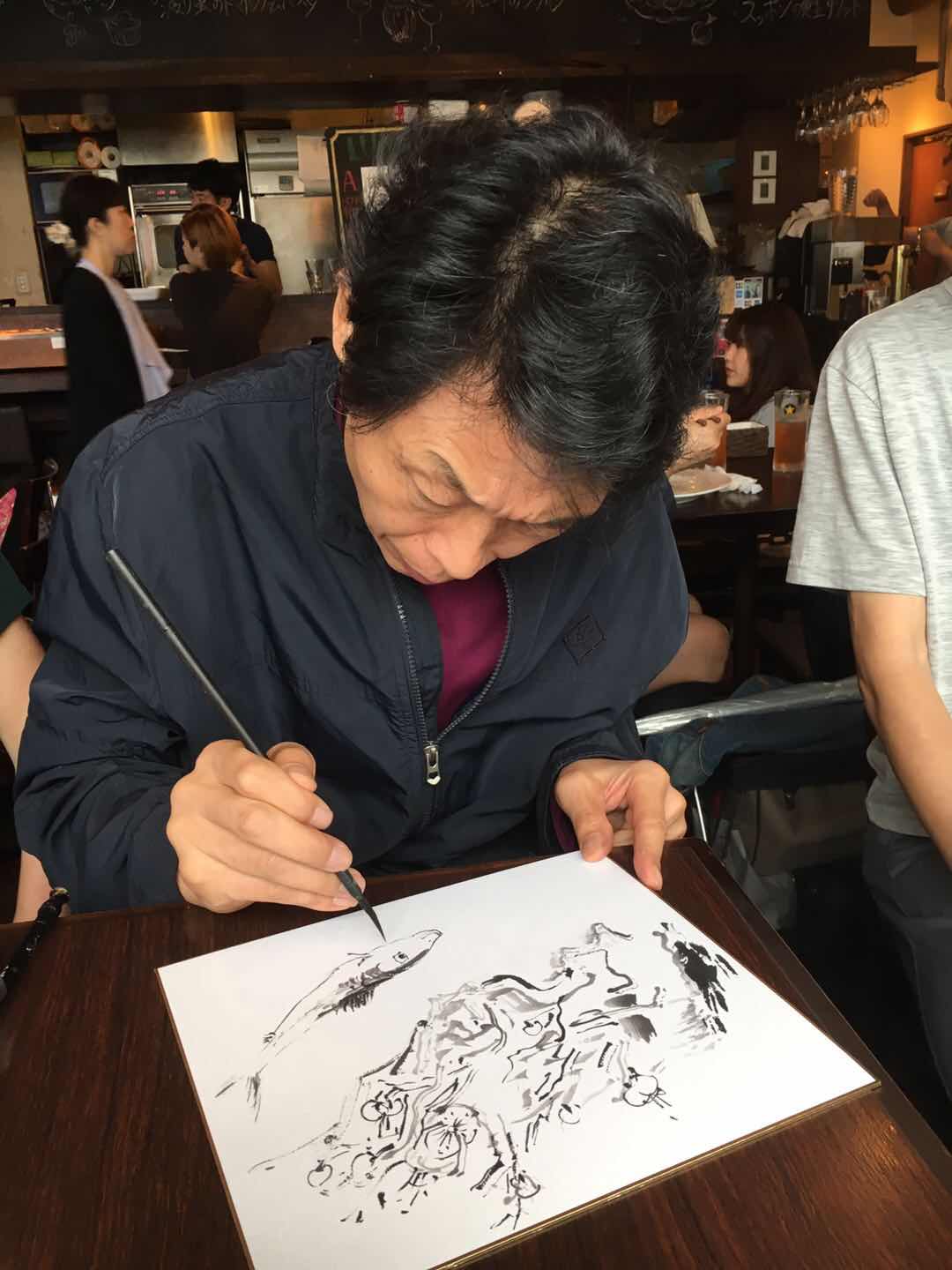 今天画家黄三枝先生从北京来到东京,杨永居先生约请几位龙友在浅草桥小聚,大家在一起切磋书画技艺,不亦乐乎。