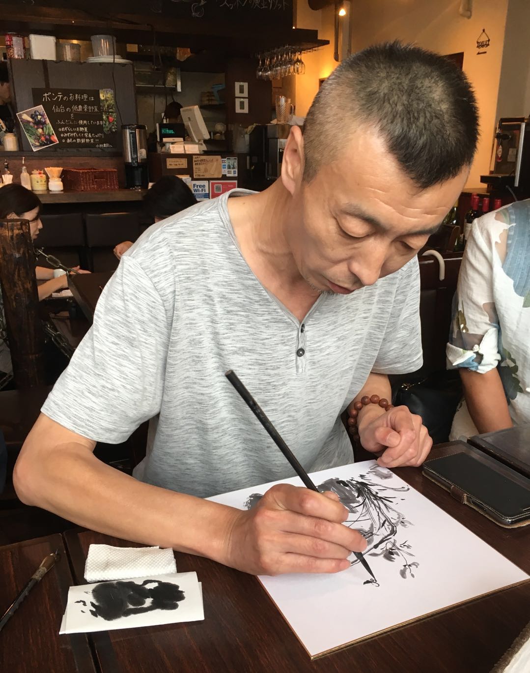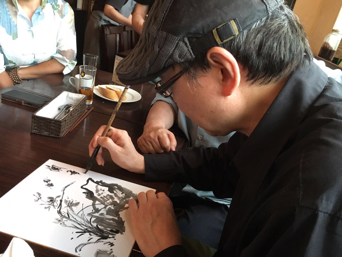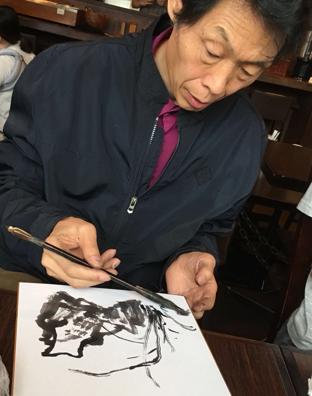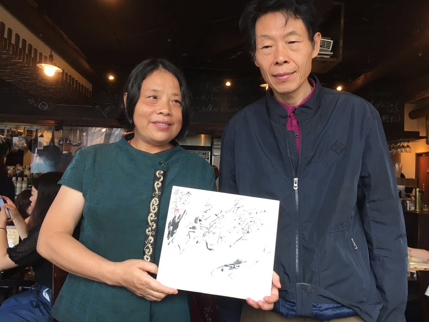 今天画家黄三枝先生从北京来到东京,杨永居先生约请几位龙友在浅草桥小聚,大家在一起切磋书画技艺,不亦乐乎。