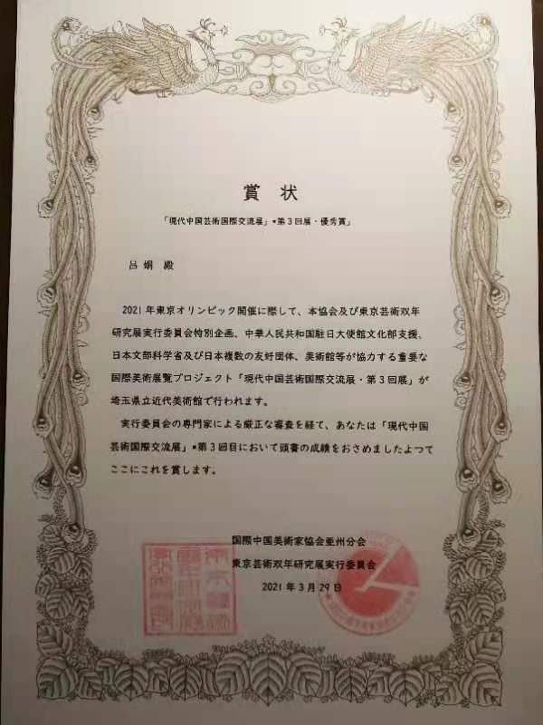 更让在日华人圈骄傲的是,参展的10位旅日华人美术家中,有4人获奖,吕娟是其中的一位。