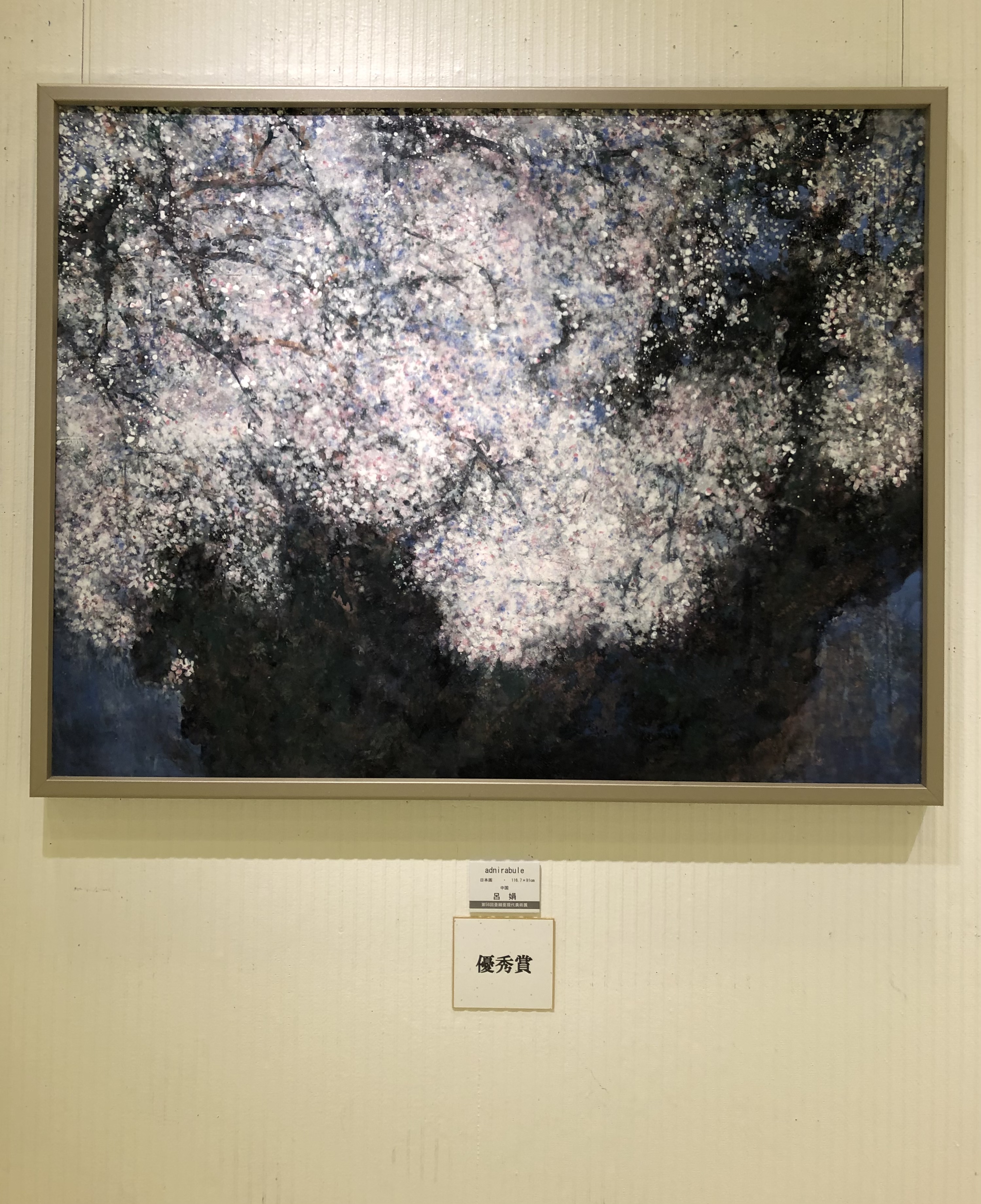 樱花时节,在埼玉县近代美术馆举办了“現代中国藝術国際交流展”第3回展。参加这次活动的画家有日本人画家、同时邀请了在中国囯内的艺术家、和在曰本的吕娟和另外一位油画家。現代中国藝術国際交流展的评委老师的级别很高,他们有曰本美術院院士、日展评委、武藏野美术大学教授、京都市立艺术大学教授、大阪艺术大学教授等等。