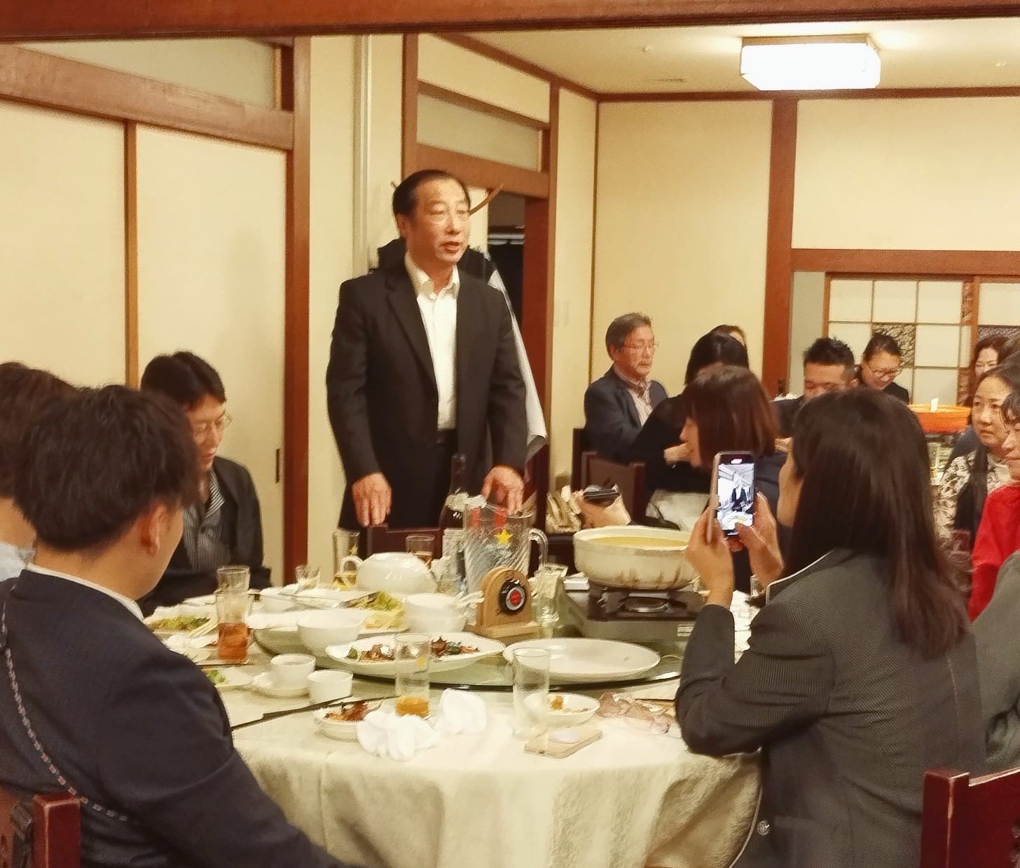 在酒过三巡,人们尽情地品尝东京阁的珍味佳肴之后,与会者们开始了自我介绍,说话者简明扼要,听话者凝神静听,因为这是一次难得的交流机会。在东京经营语言学校”文教学院“的校长三国春树先生说:第一次参加这样类型的聚会,有意义,这里真的是人才济济啊。