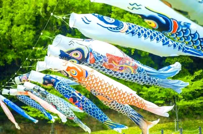 五月五日,既是日本的男孩节,也是日本的端午节。有男孩的家庭会从春分那天开始就早早地在院子或阳台等室外挂上醒目的鲤鱼旗;四月中旬开始会在室内将“五月人形”或“兜(铠甲)”摆放好;到了男孩节当天,则会让孩子洗个“菖蒲浴”,全家人同吃一种用可食用的柏树叶裹着的叫做“柏饼”的糯米糕点和日式粽子。这些习俗中,饱含着家长对孩子的祝愿与期盼,希望孩子将来能健康幸福并出人头地(鲤鱼跳龙门)。