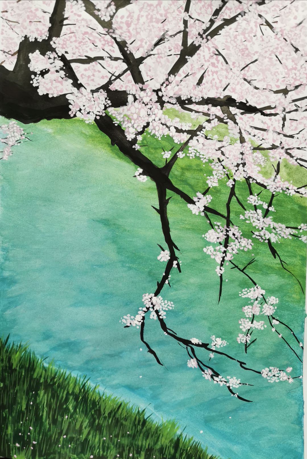 记得你的衣服真美啊!所以我在我的画本上画了你美丽的模样,樱花和公园的小草,想留住你,抚摸着你的感觉真好。