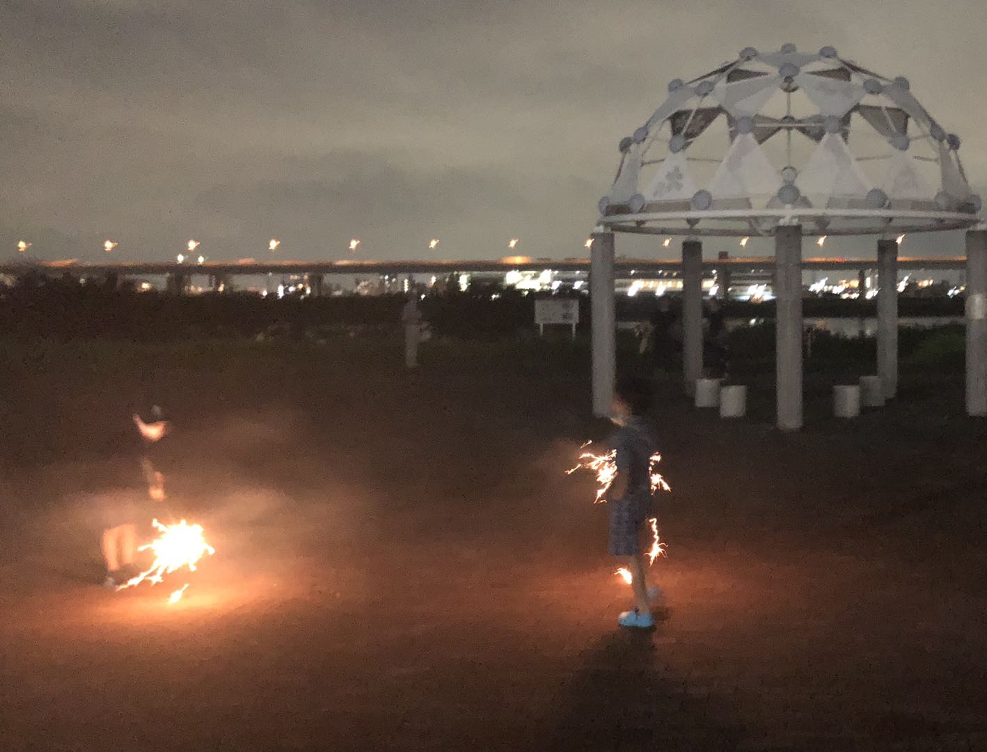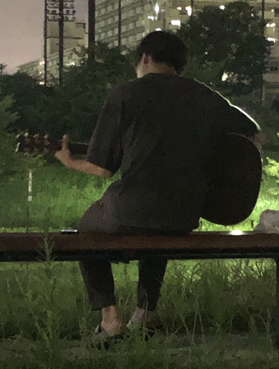 漫步荒川河畔公园、雨后夜空、万籁寂寞、秋虫争鸣、虽立秋仅半月、残暑尚未消.