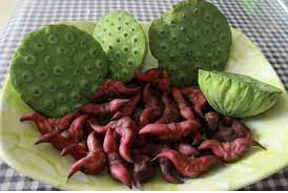 新鲜的菱角,淡淡的紫色,外面的壳还嫩,用手一掰就开,可以生着吃,脆脆的,淡淡的甜香。过了一段时间,菱角氧化,颜色发黑,外壳变硬,两头的尖角也变得很锐利,扎手吃不得。母亲就会放到锅里煮熟。这时候的老菱角会面面的,有毛栗子的香甜。菱角也可以烧肉或者炖蹄膀,成为饭桌上的一道美味佳肴。