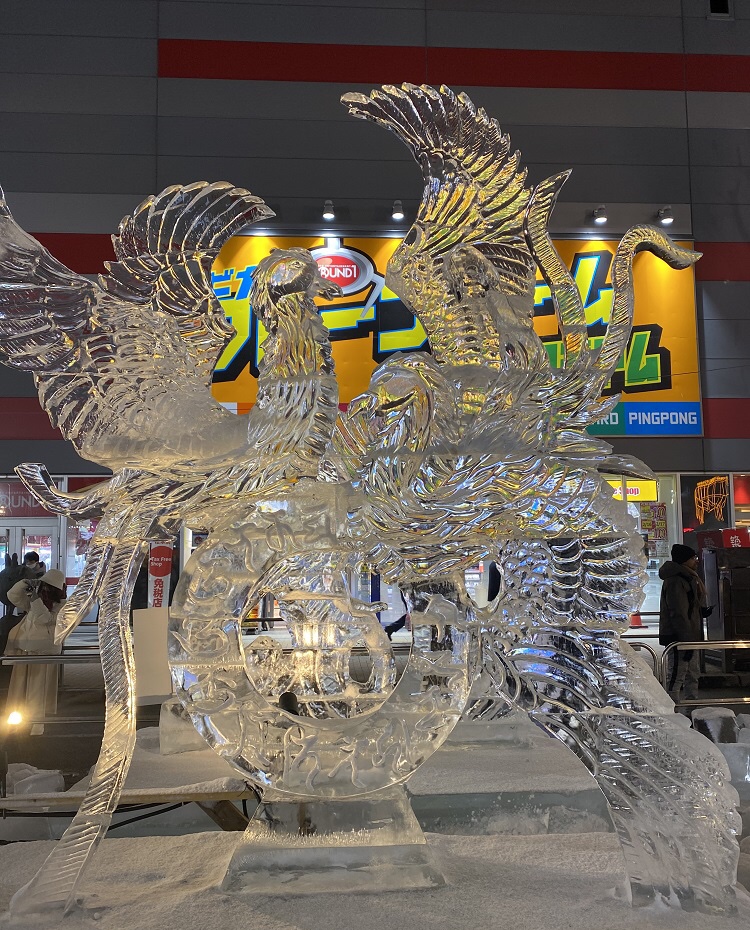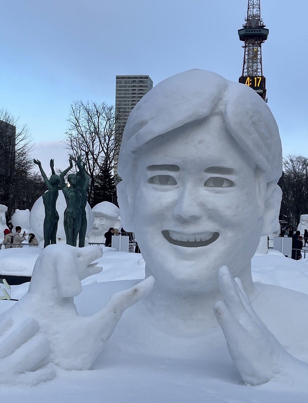 不同于往年的严寒,今年的暖冬让雪祭带有了几分轻松与欢快,虽然雪量没有往年那么多,但这丝毫没有影响到雪祭的热烈和游客们的热情。大型雪雕和各种动漫人物雕塑,以其别出心裁的创意,赢得了国外游客格外的欢喜和赞叹。尤其是大谷翔平君的雪像,让我有幸与之合照,留下了难忘的纪念。