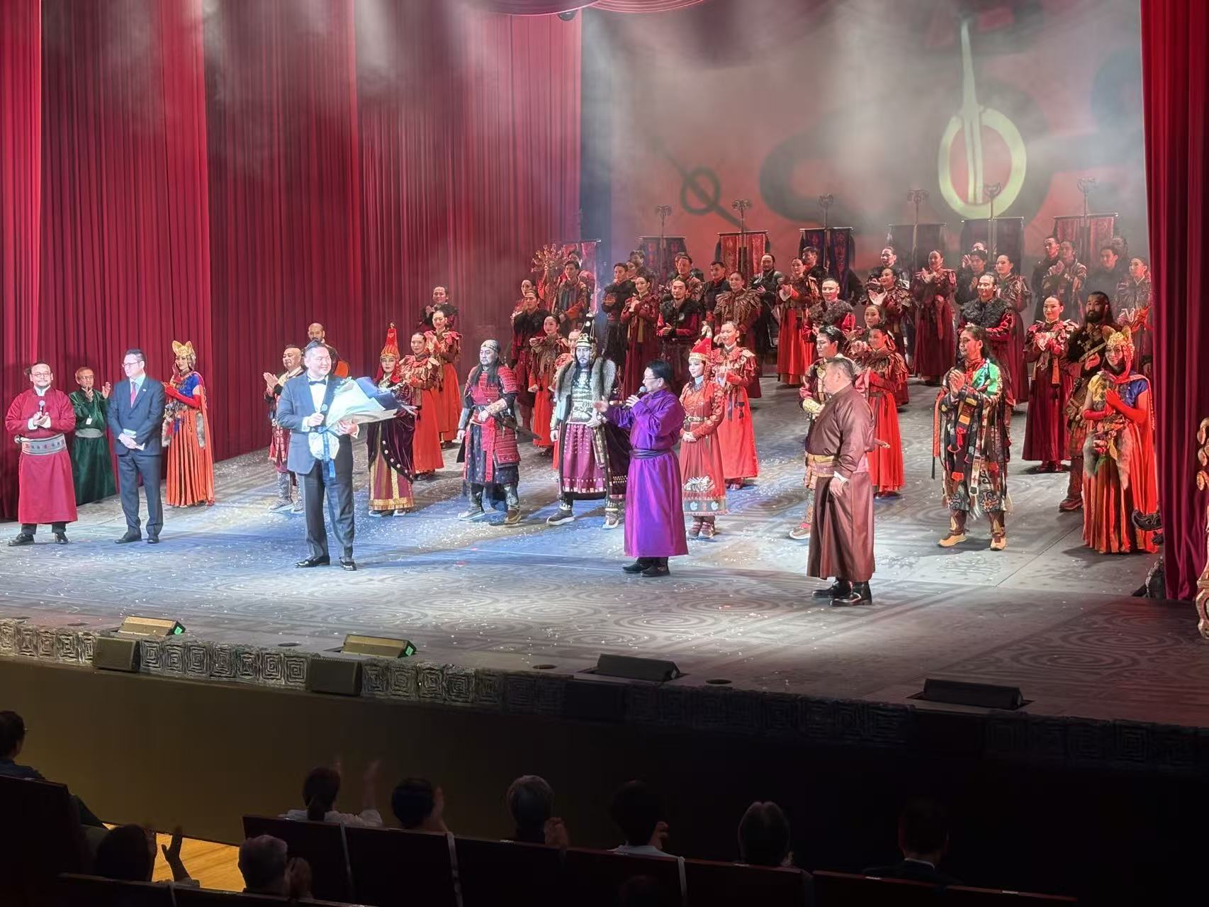 演出结束后,蒙古白鹏大力士上台祝贺。
