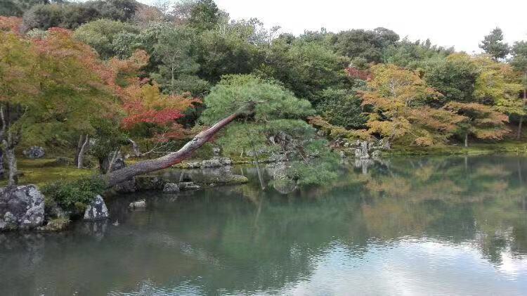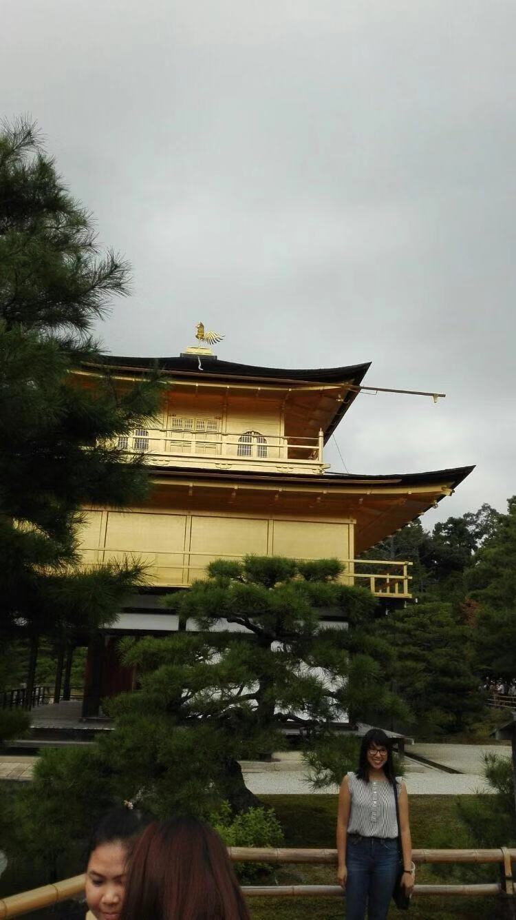 金阁寺远眺,时已过下午5点,光线转暗,如有阳光照射是很辉煌的。
