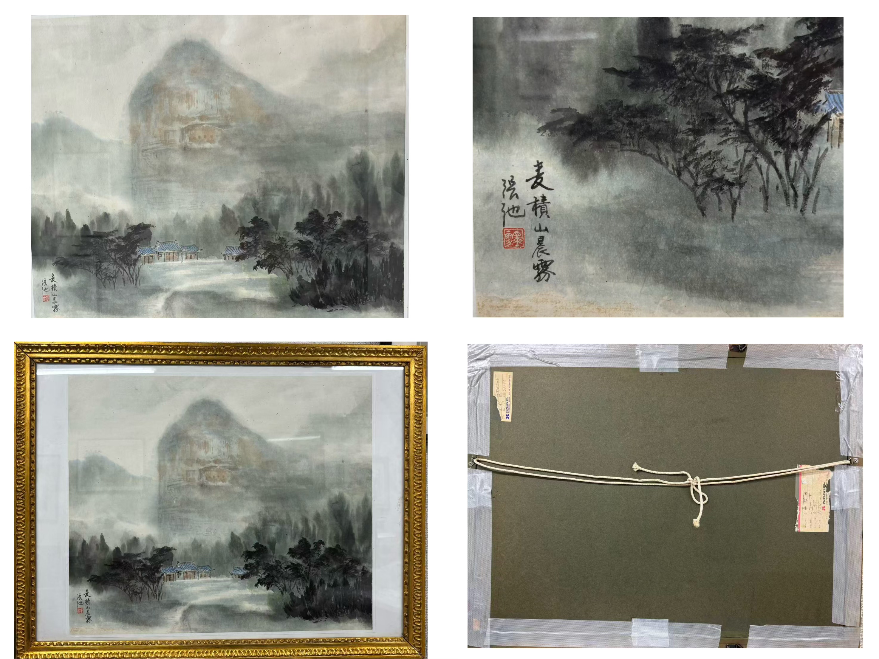 张弛   “麦积山晨雾“   画心尺寸54.5x46cm  配有木制镜框