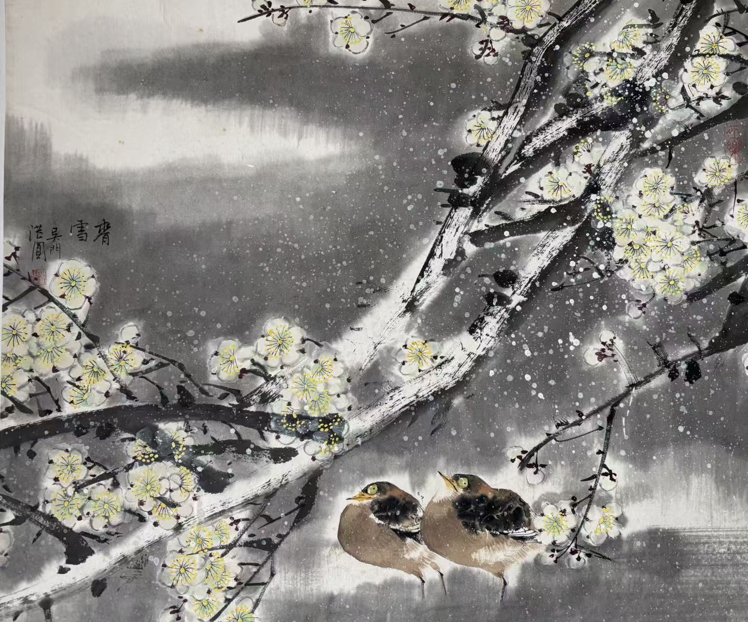 应诗流   “ 瑞雪“  画心尺寸45x33cm  配有木制镜框