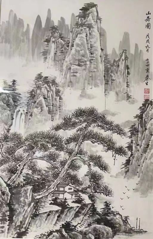 08、 秦生 山居图,68x45cm ,镜片 水墨