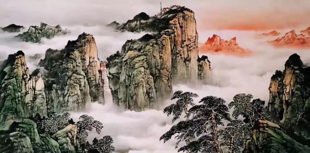 09、 秦生 泰山日出,68x136cm 镜片 水墨