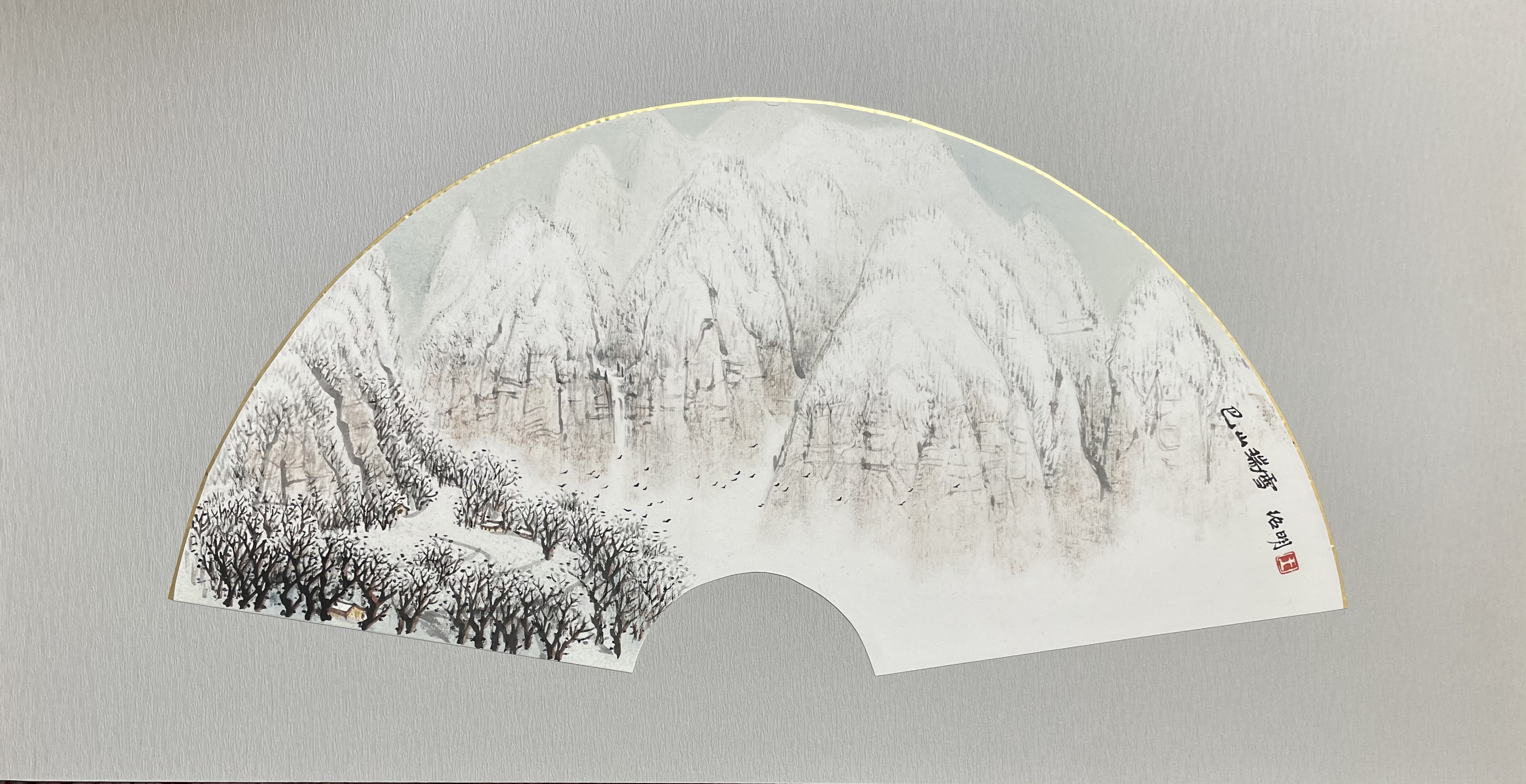 12、 王绍明 巴山瑞雪 扇面 水彩