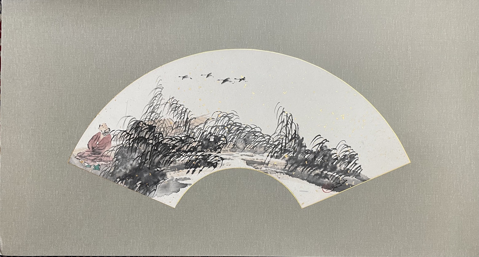 13、 韩昌力 坐看雁飞 扇面 水墨
