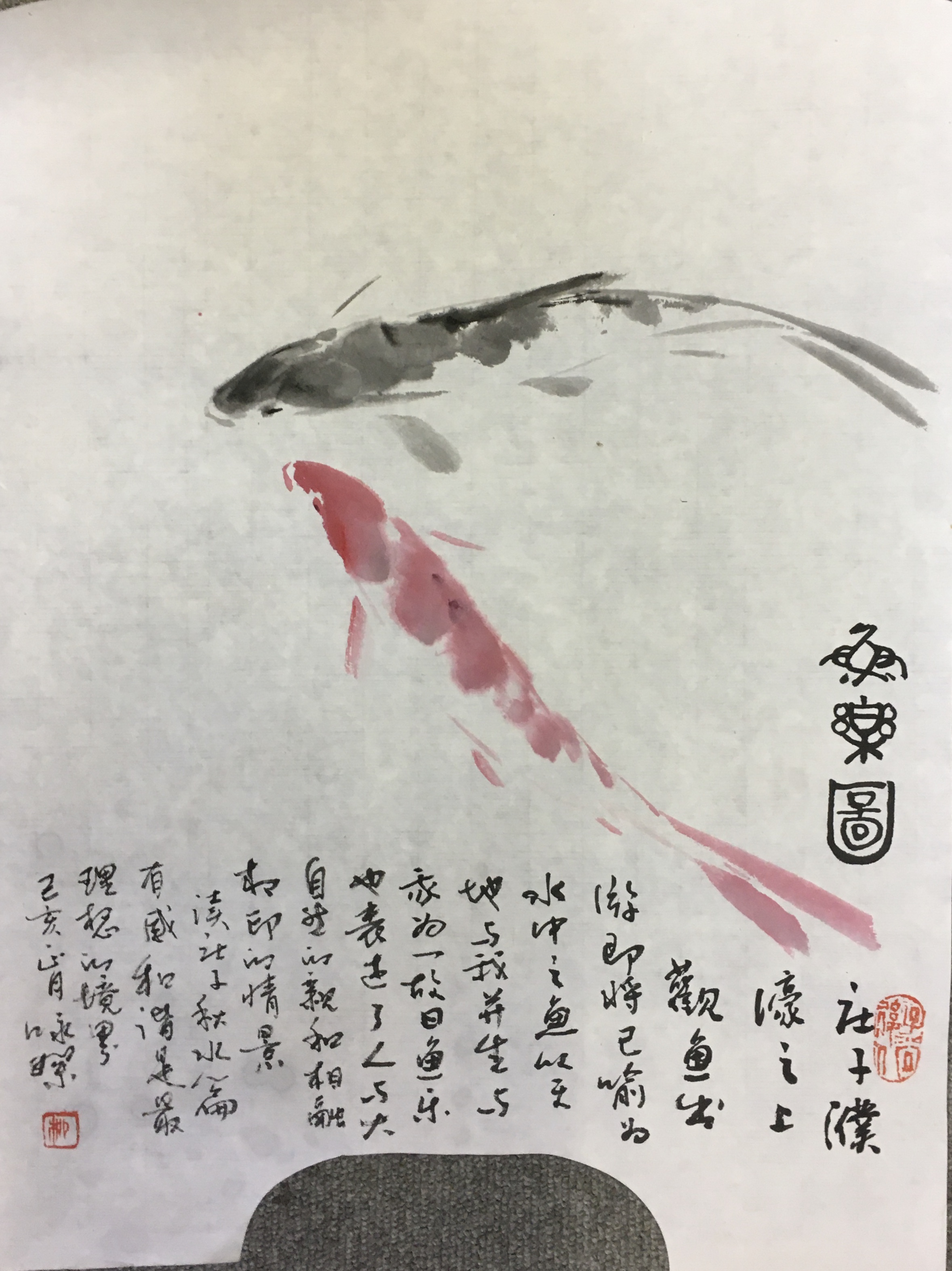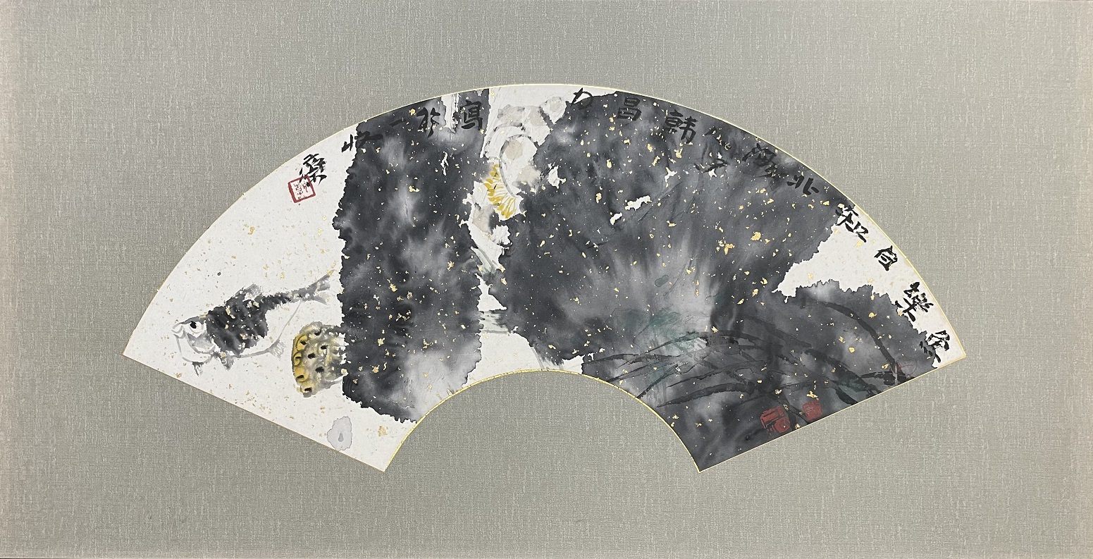 14、 韩昌力 鱼乐自知 扇面,水墨