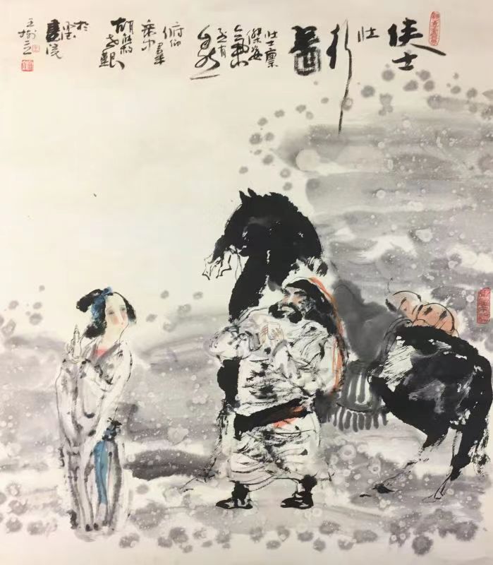 17、 王树立 侠士壮行图 83x70cm 镜片,水墨
