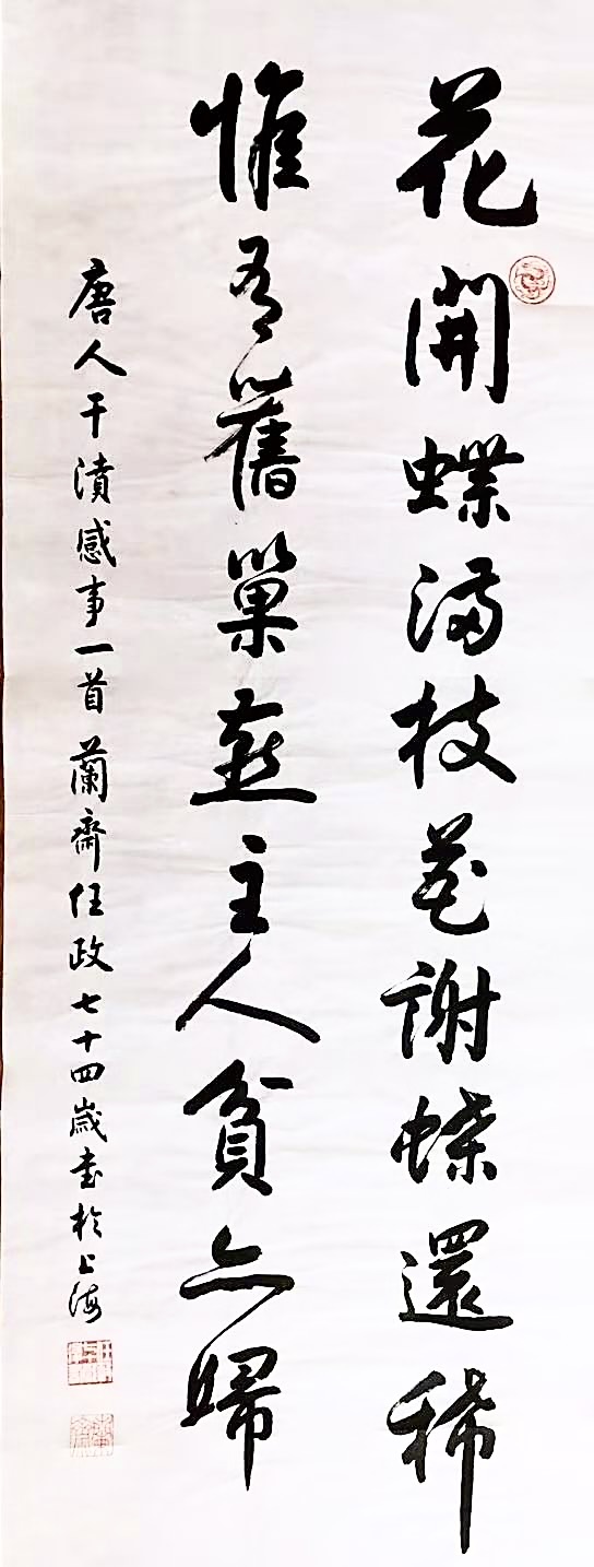 19、 任政 花开蝶满枝,100x34cm 镜片,书法