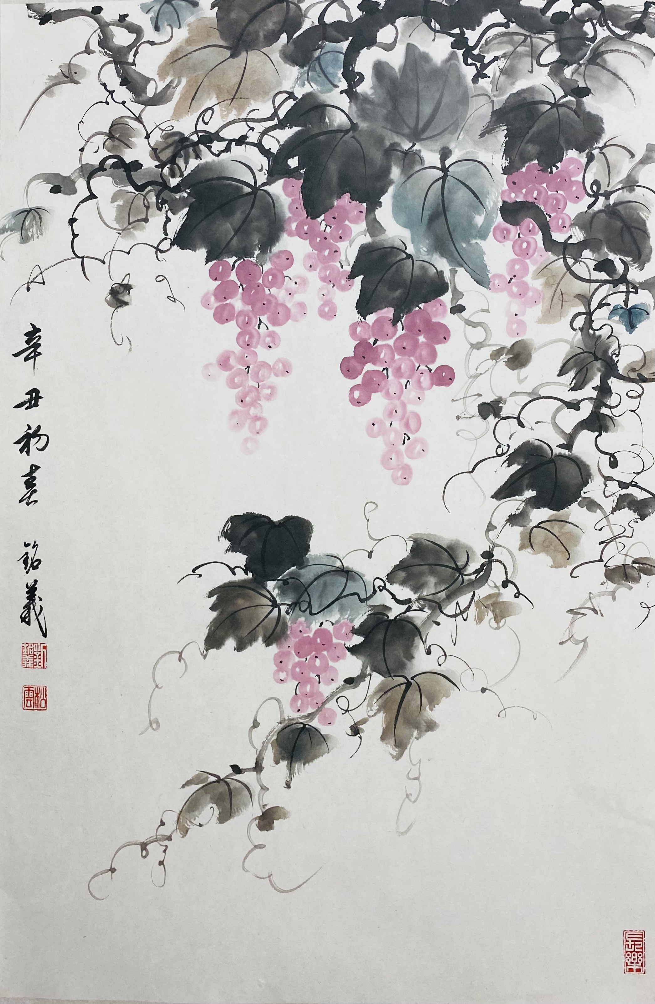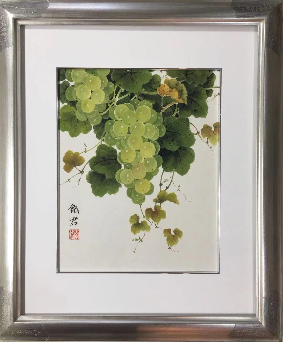 55 李铁君 中国画 葡萄 尺寸24x30cm 镜框