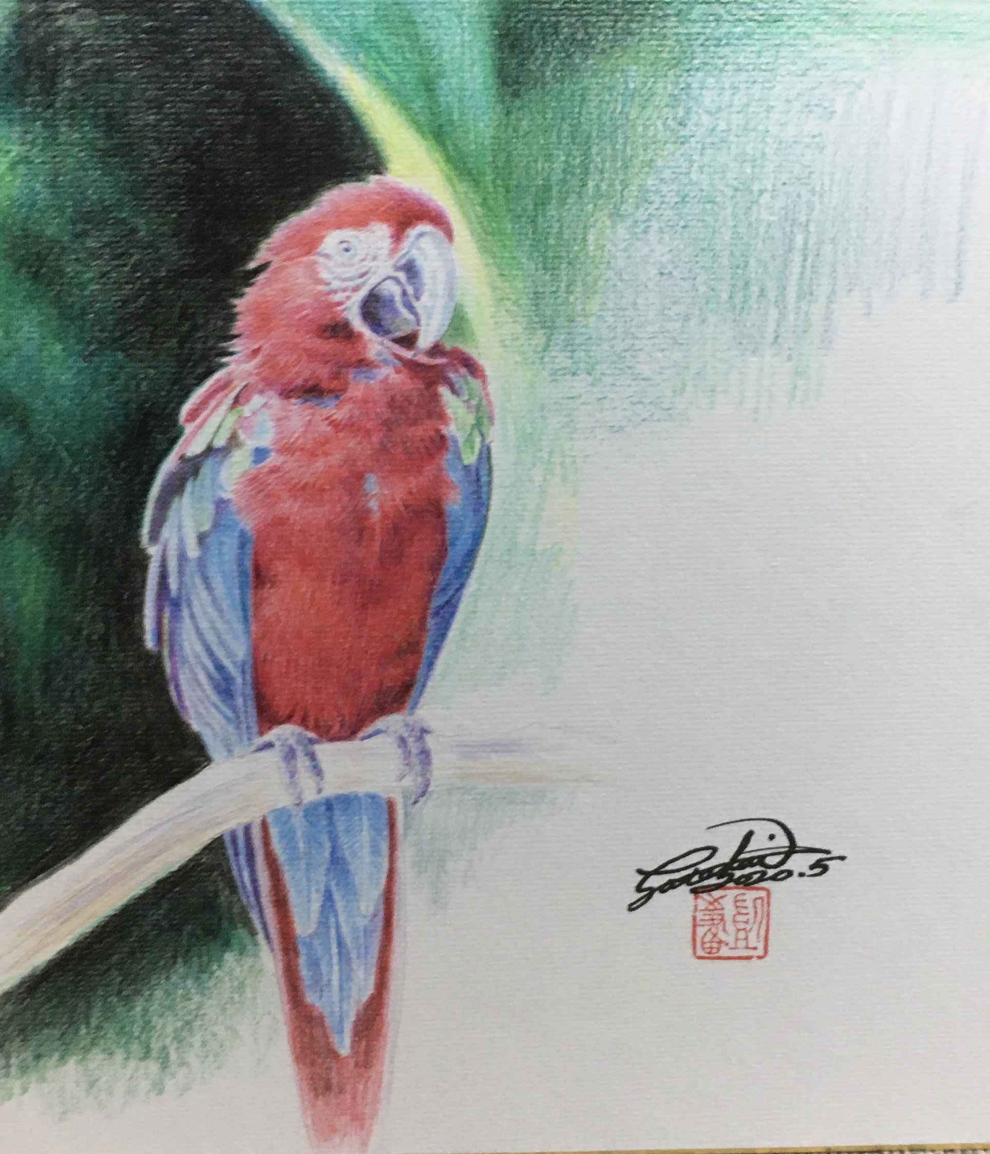 35 佐藤凯 鹦鹉 色纸 彩色笔画 24.5x27.5cm