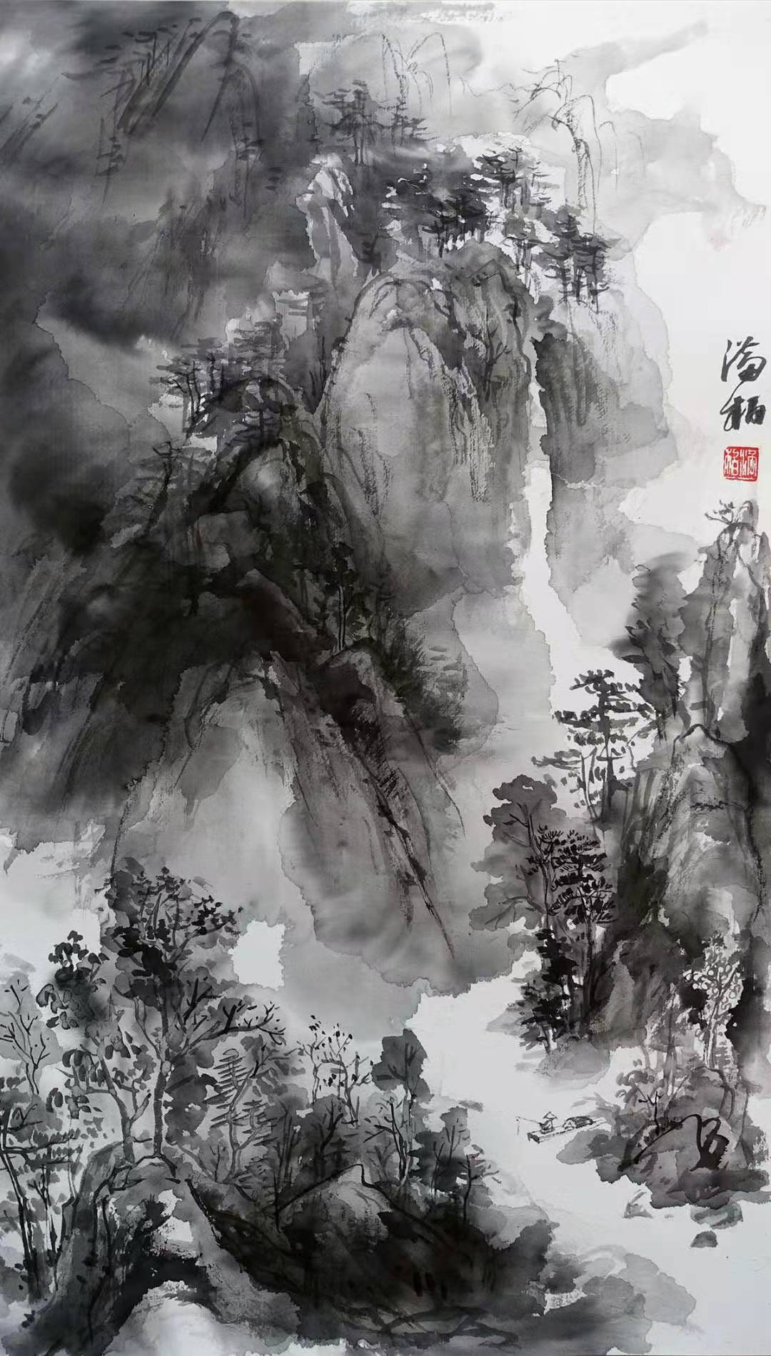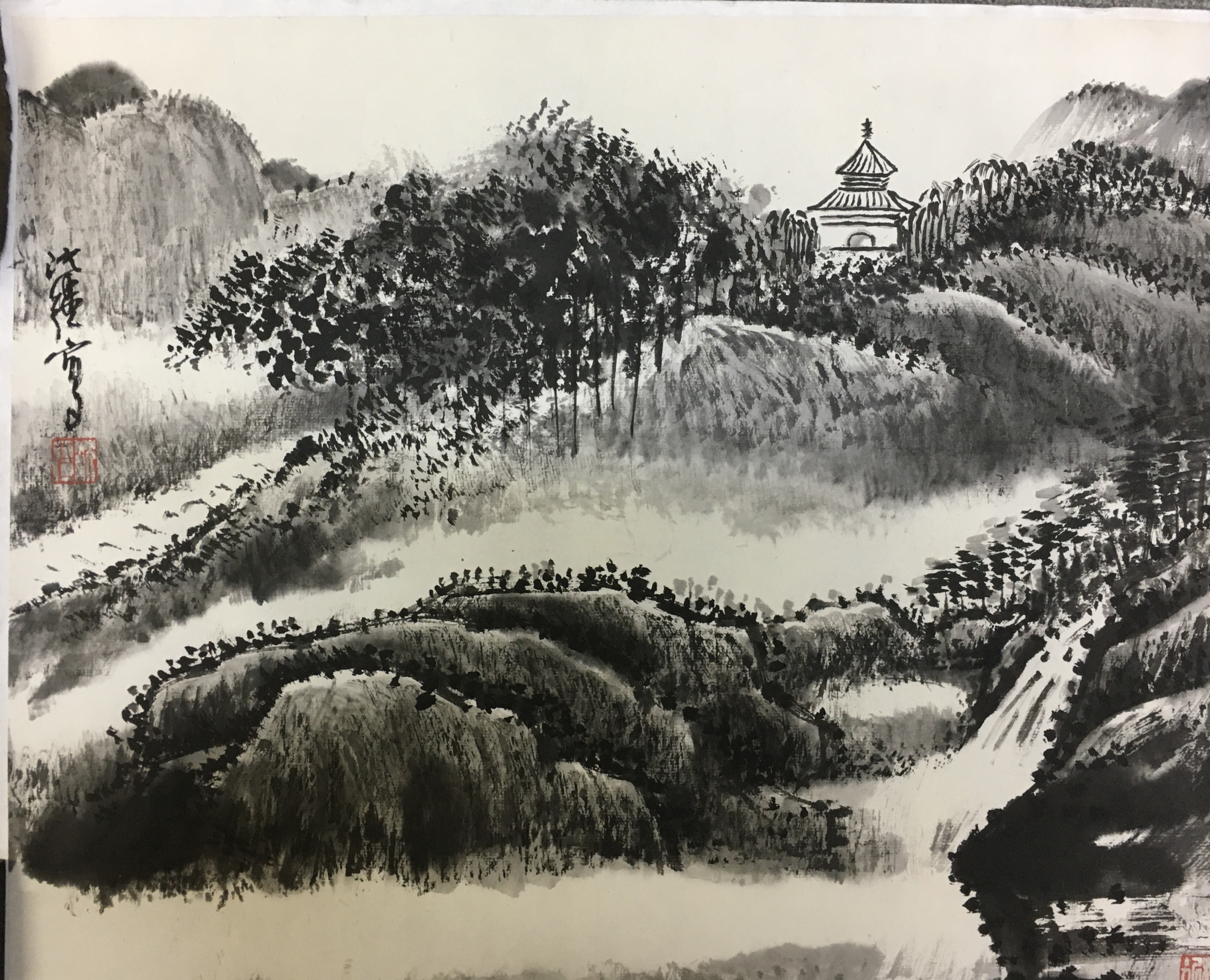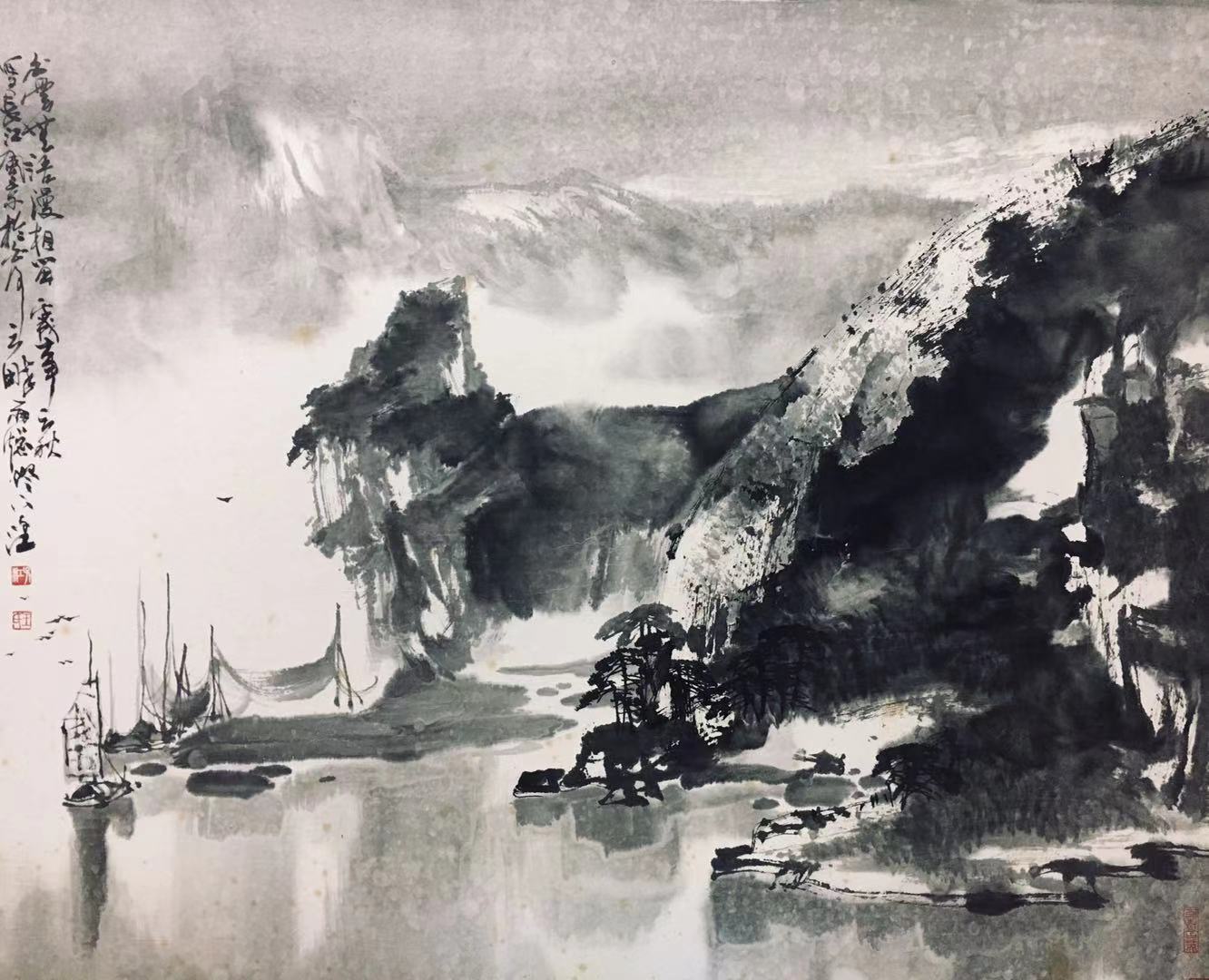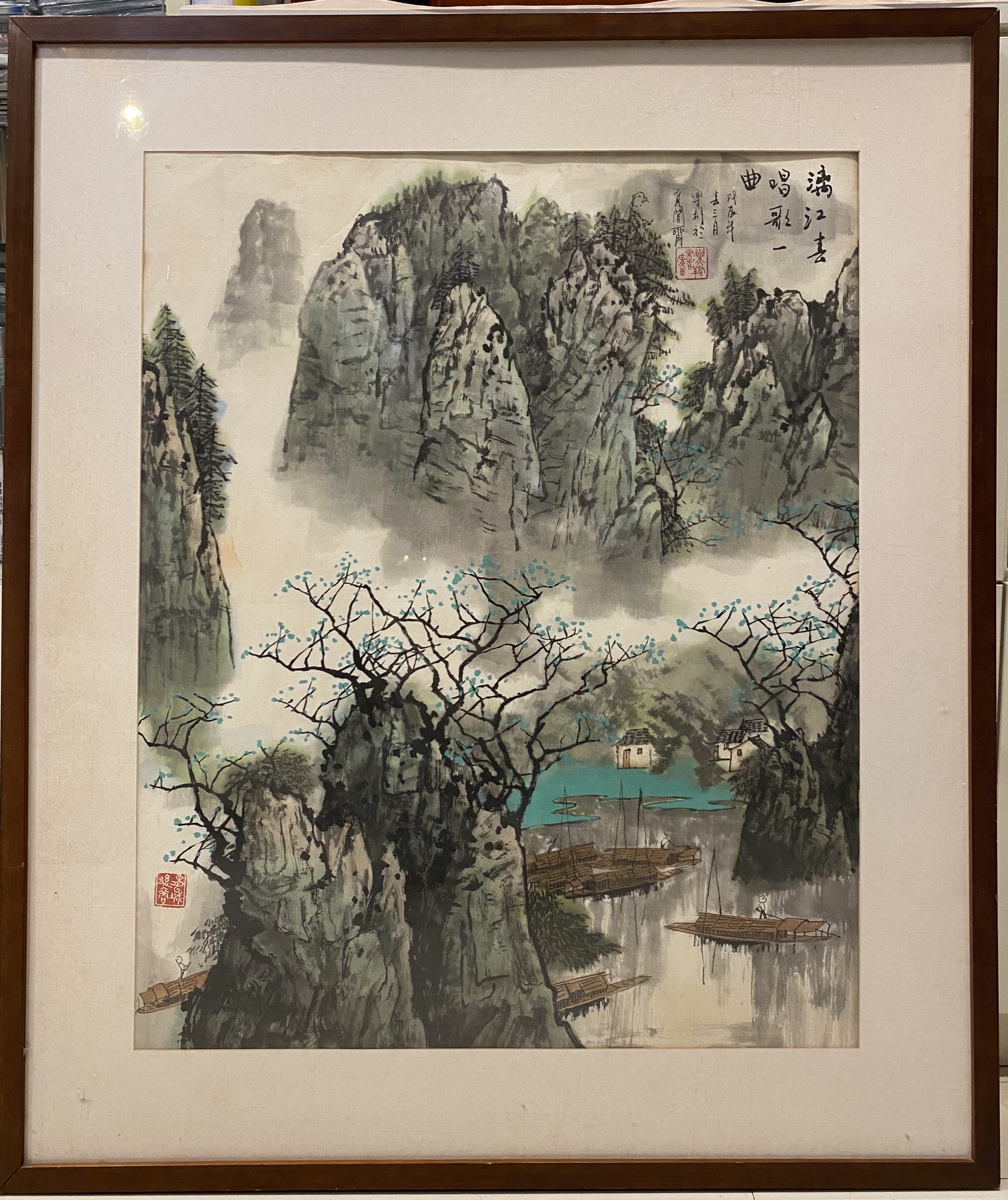 50 王子江 长江风景 63x78cm 水墨 镜框