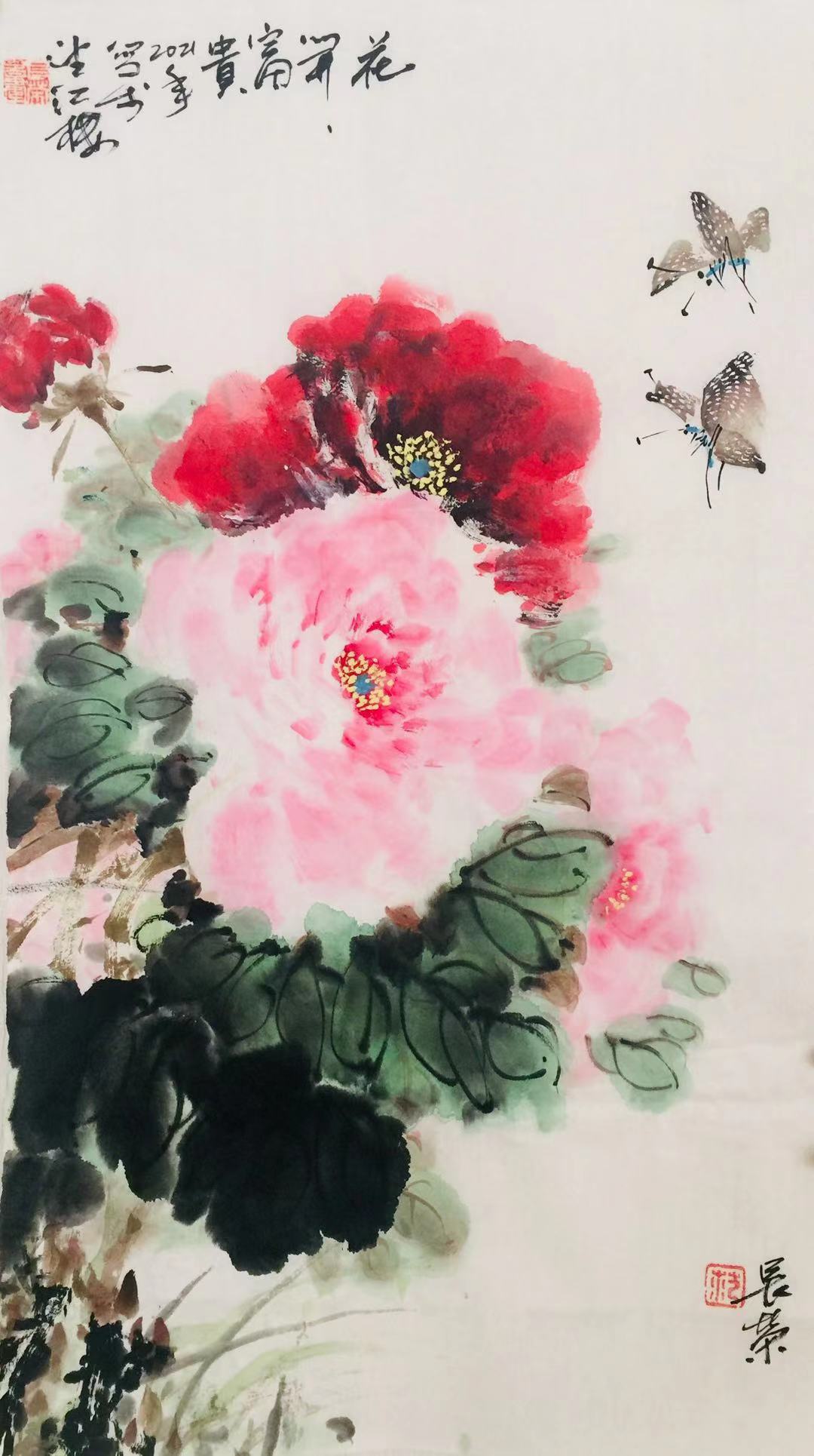 48 范長榮,花开富贵 68x39cm 水墨 镜片