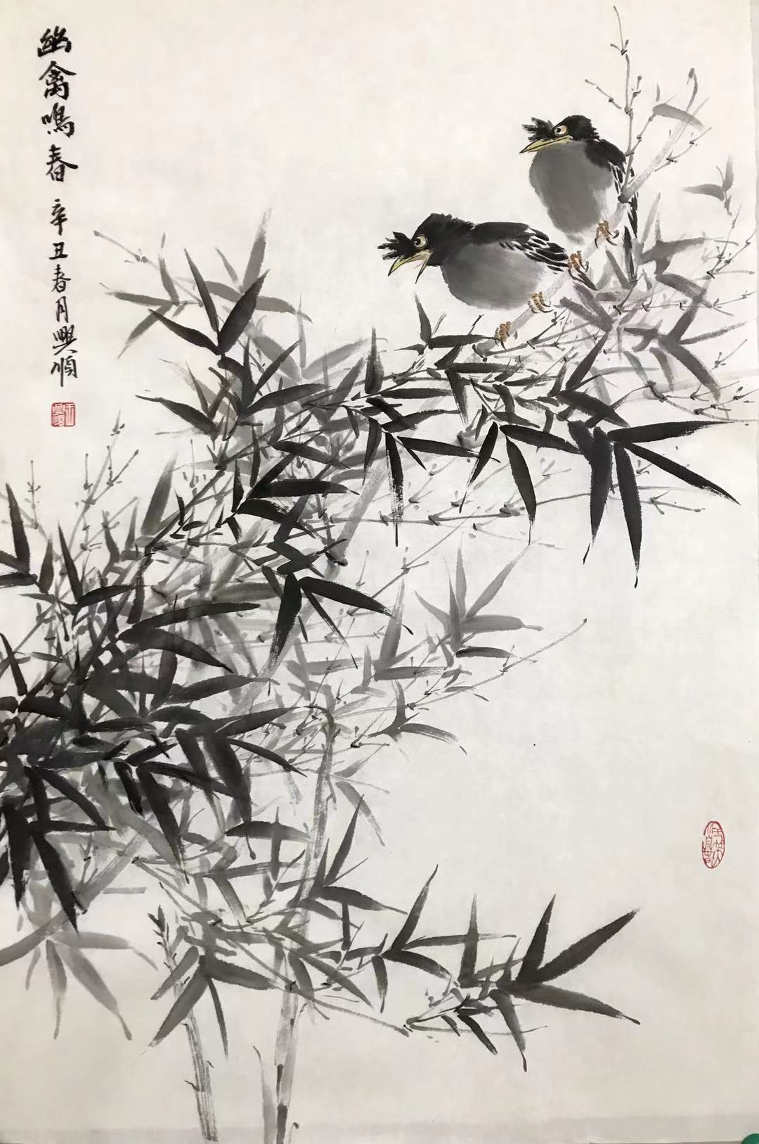49 王兴顺 幽禽鸣春 68x45cm 镜片