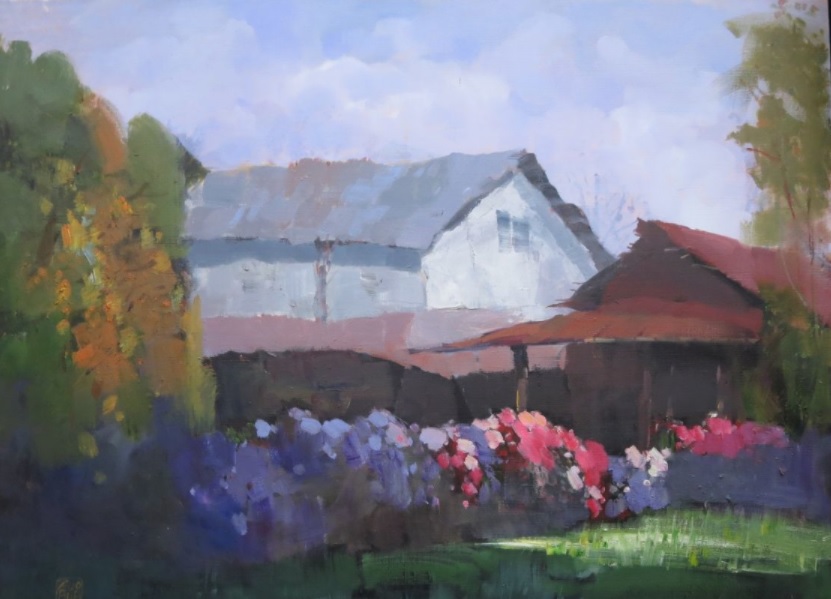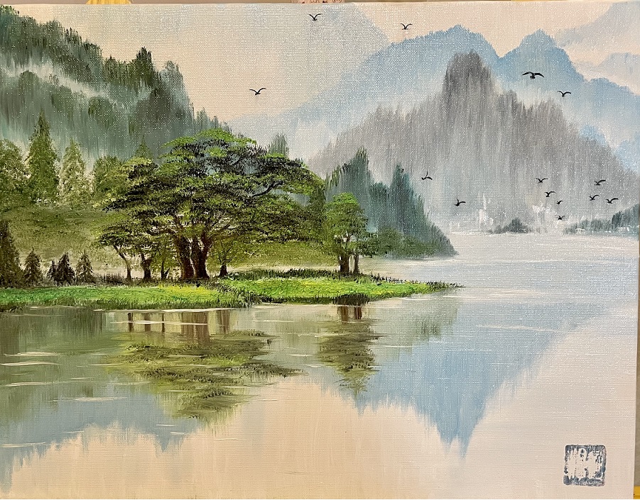 57 由佳 布面油画《山水色、两相合》F6(409mm/318mm) 画框