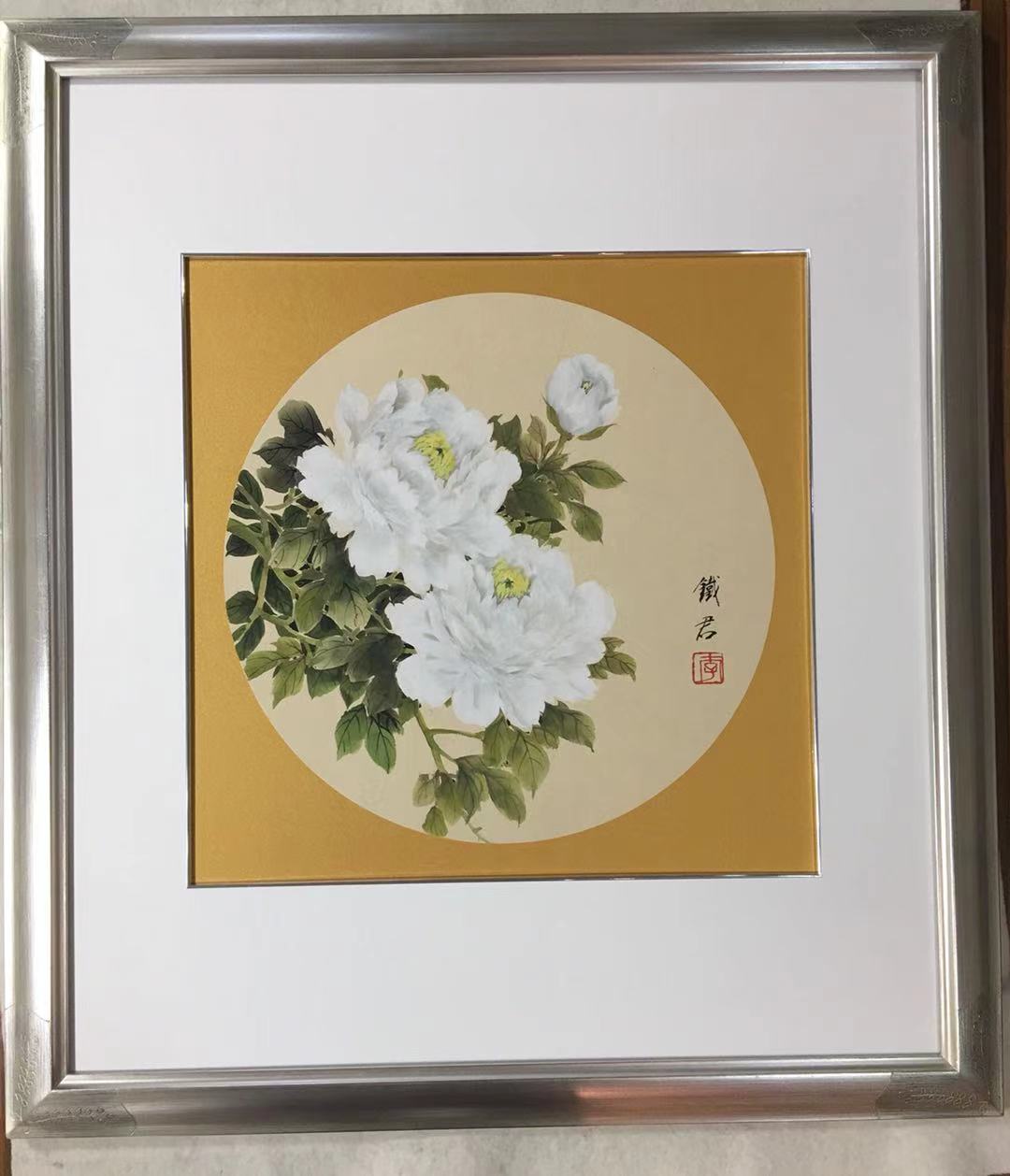 54 李铁君 中国画 牡丹 36x36cm 镜框