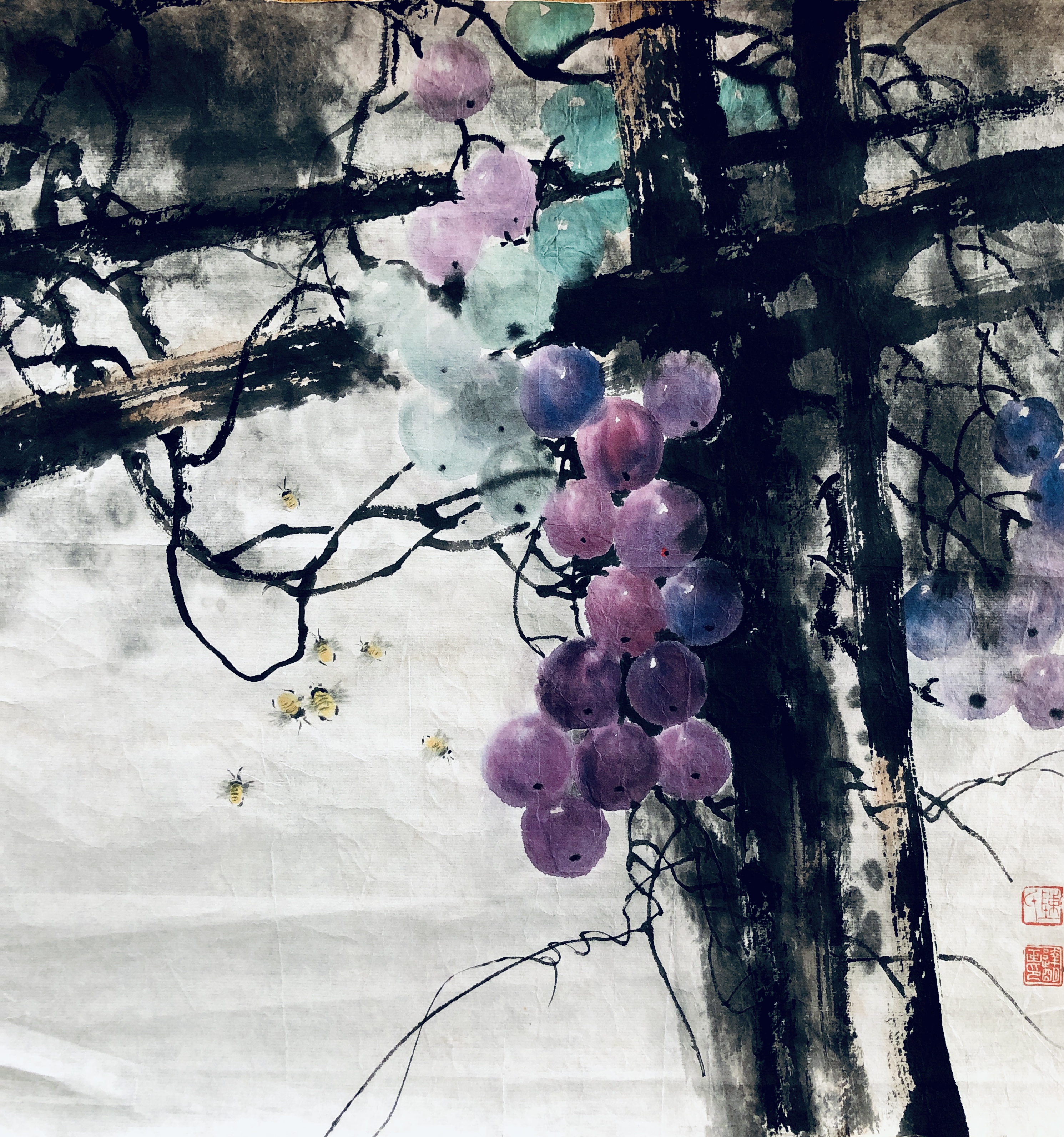 63 陈达明 《葡萄園》 34cmx35cm (镜片 水墨)