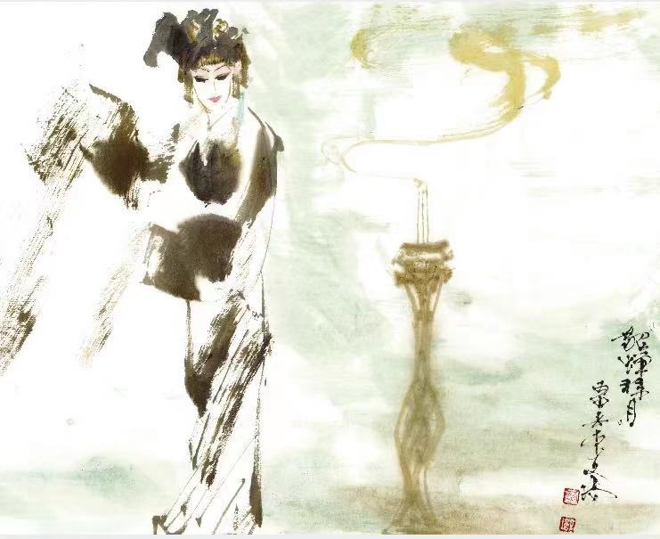 说“前无古人,后无来者”可能有些夸张,但我的友人李文培先生在他五十多年的艺术实践中,义无反顾地创建了一座中国人物画的里程碑:戏曲人物。在他的丹青笔墨下,人物不仅仅映现了一种文化,一种历史;也不仅仅以虚表实,以简代繁,让人物的命运产生久远的哲理反思,他创造的每一个戏曲人物既有瞬间亮相的美,又赋予行云流水般的韵律,我们好像感受到人物活灵活现的灵魂,这是艺术创造的极高境界,也是他的作品之所以让人想象无限的魅力。