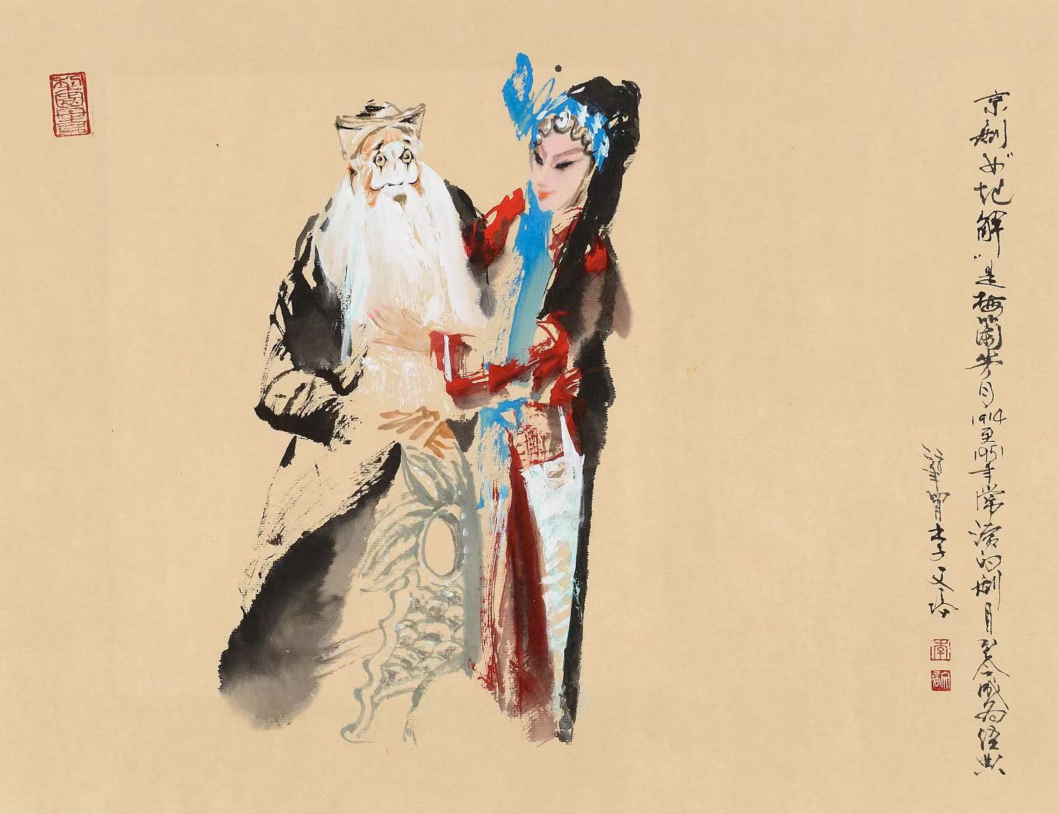 此剧为张(君秋)派代表作,刻画了一个不向恶势力低头的古代妇女形象。画家以秦香莲的肢体动作表达她呼天唤地的悲情。