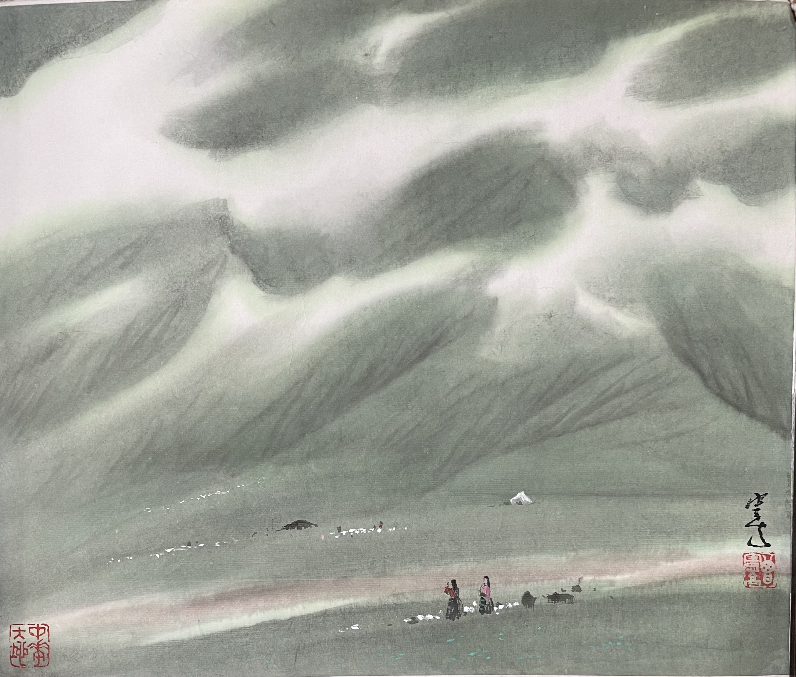 (千绢),河南省郑州市人,1990年到日本留学。进入东京画派(东京新画派)创始人金醒石先生的美术教室学习水墨,彩墨,岩彩画等,后与日本画画家福田千惠女士学习日本画,创作的《樱花》入选日展“新春展”。