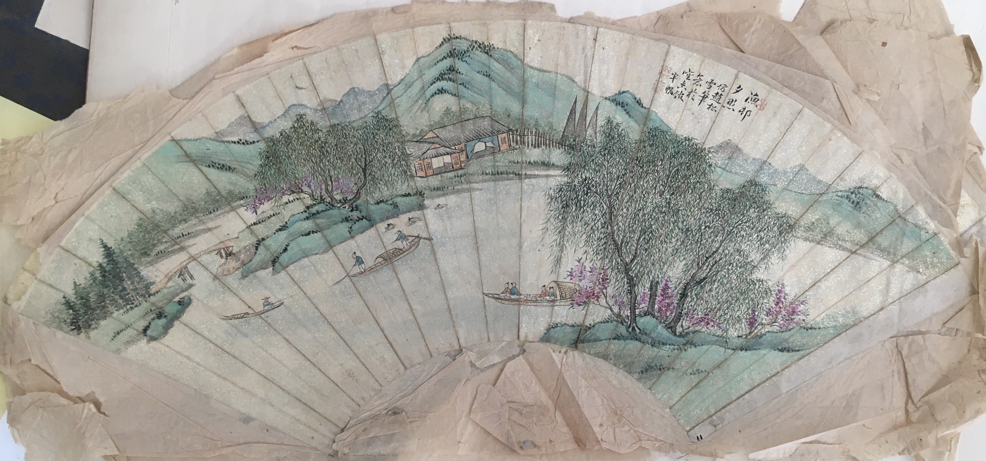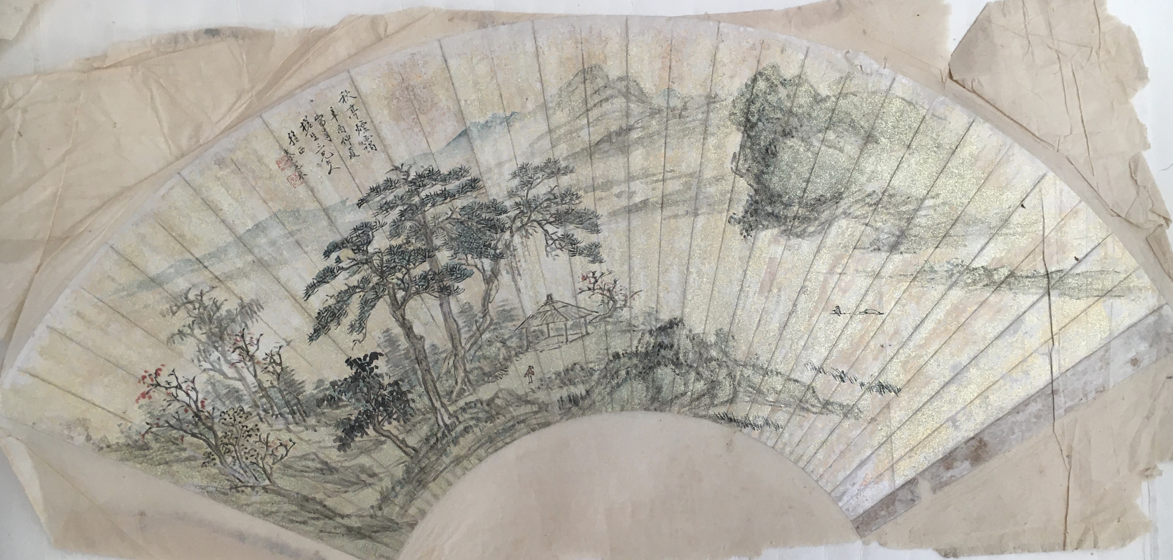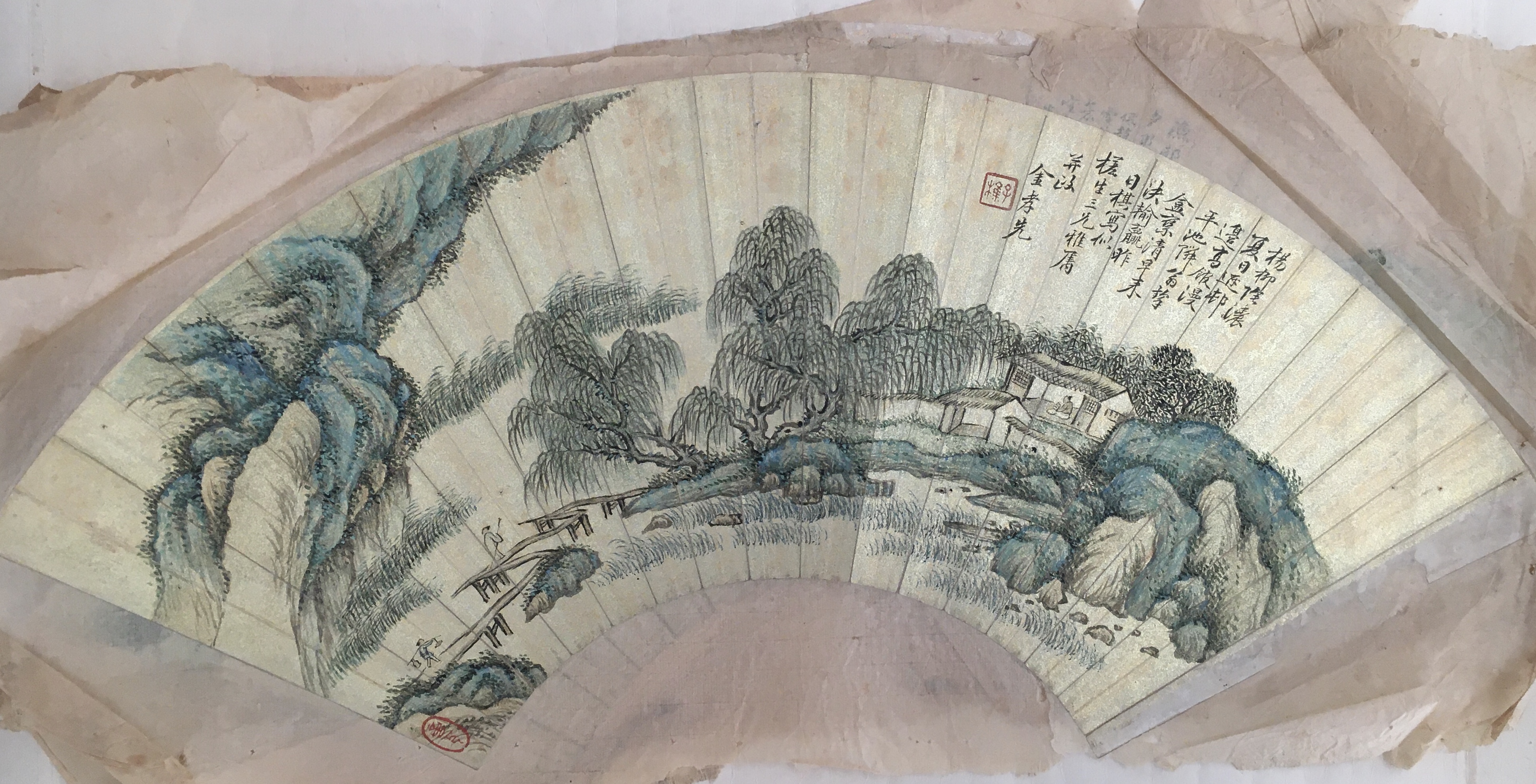107,王一亭 书画扇面一对  56x20cmx2  立轴