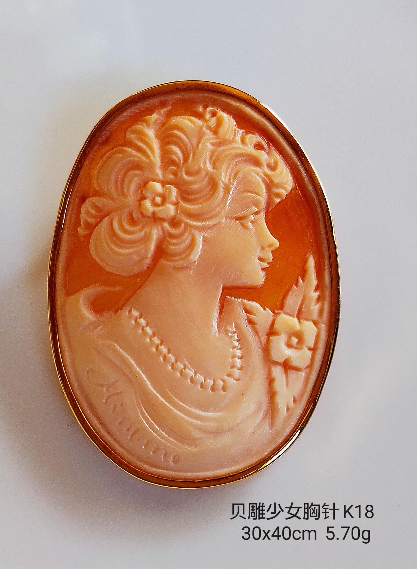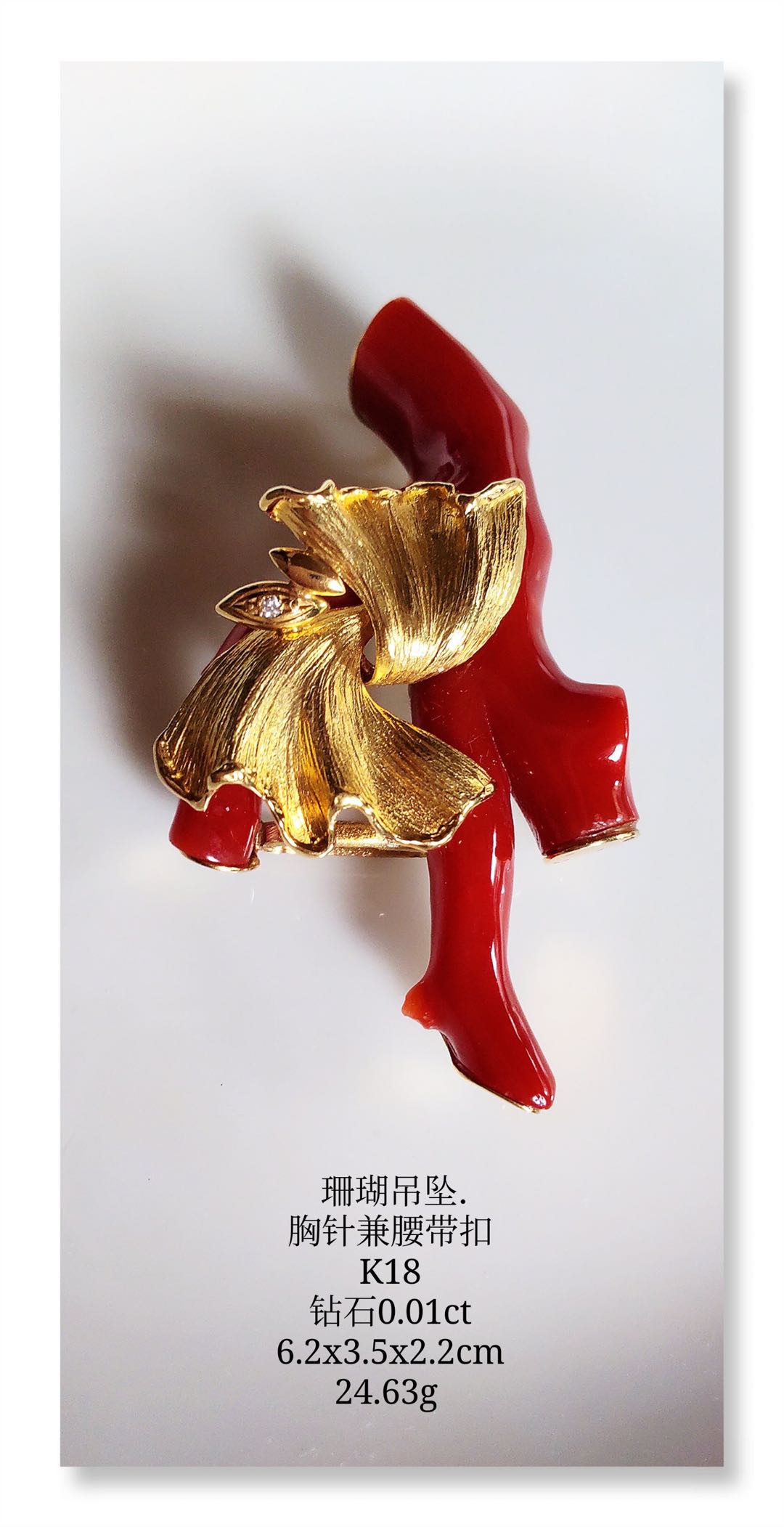 09,珊瑚吊坠.胸针兼腰带扣  K18 钻石0.01ct  6.2x3.5x2.2cm  24.63g