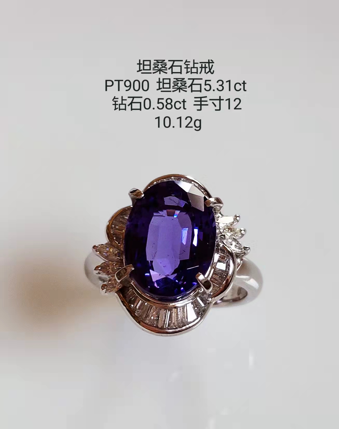 16,坦桑石钻戒    PT900    坦桑石5.31ct    钻石0.58ct    手寸12    10.12g