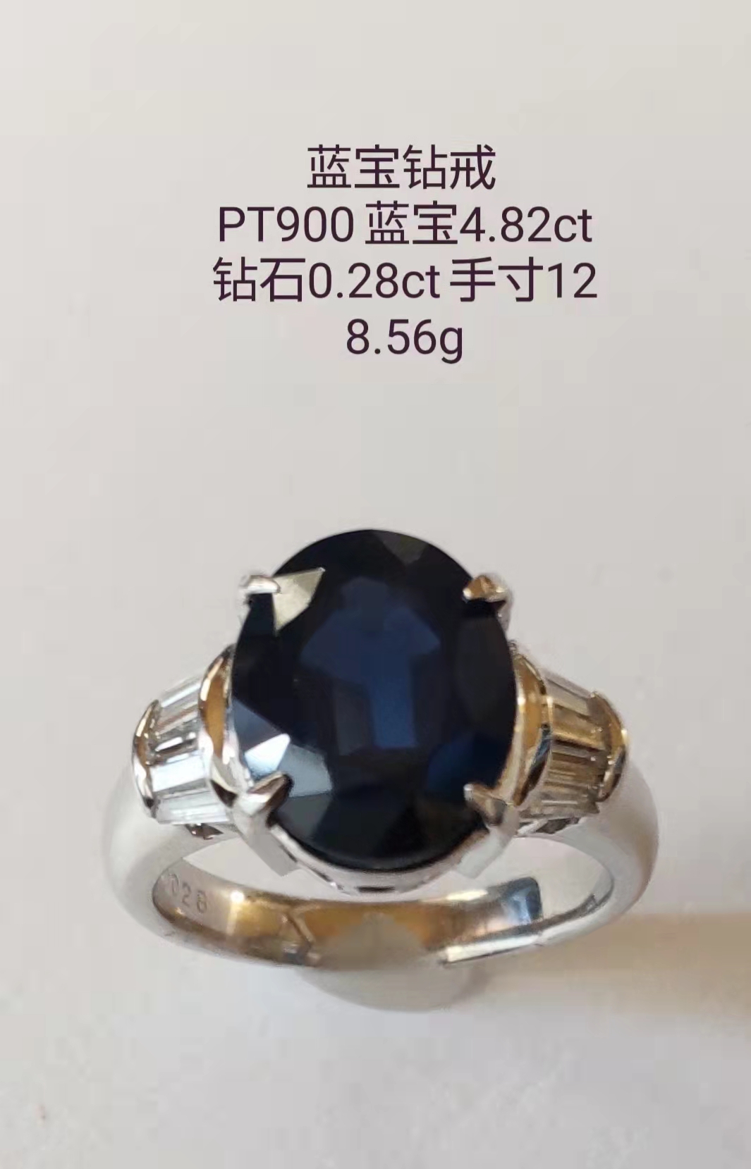 17,蓝宝钻戒    PT900    蓝宝4.82ct    钻石0.28ct    手寸12    8.56g