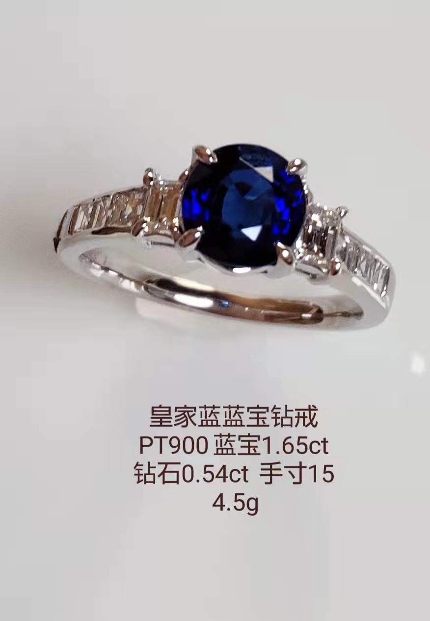 18,皇家蓝蓝宝钻戒    PT900    蓝宝1.65ct    钻石0.54ct    手寸15    4.5g