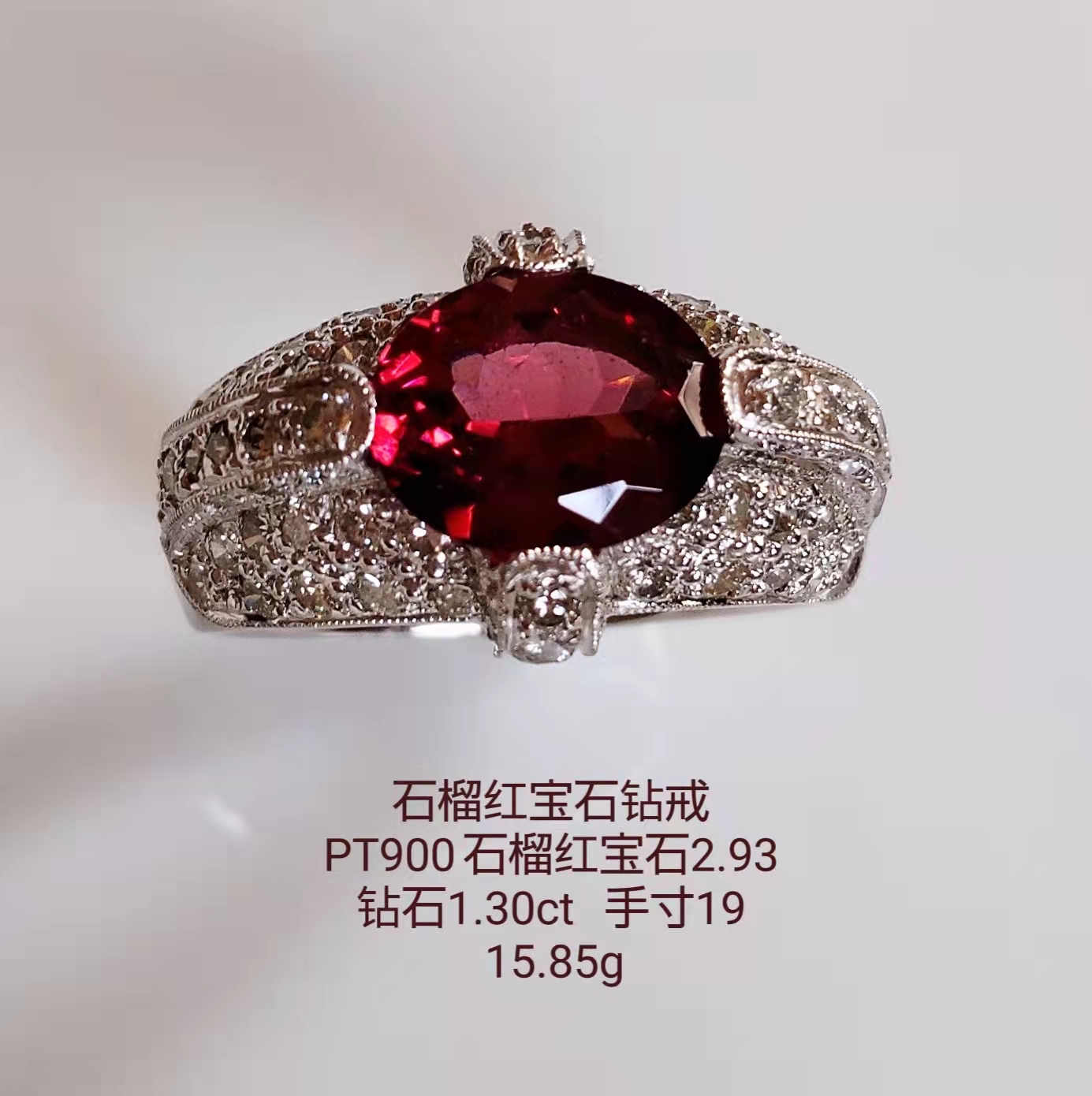 19,石榴红宝石钻戒    PT900    石榴红宝石2.93    钻石1.30ct    手寸19    15.85g