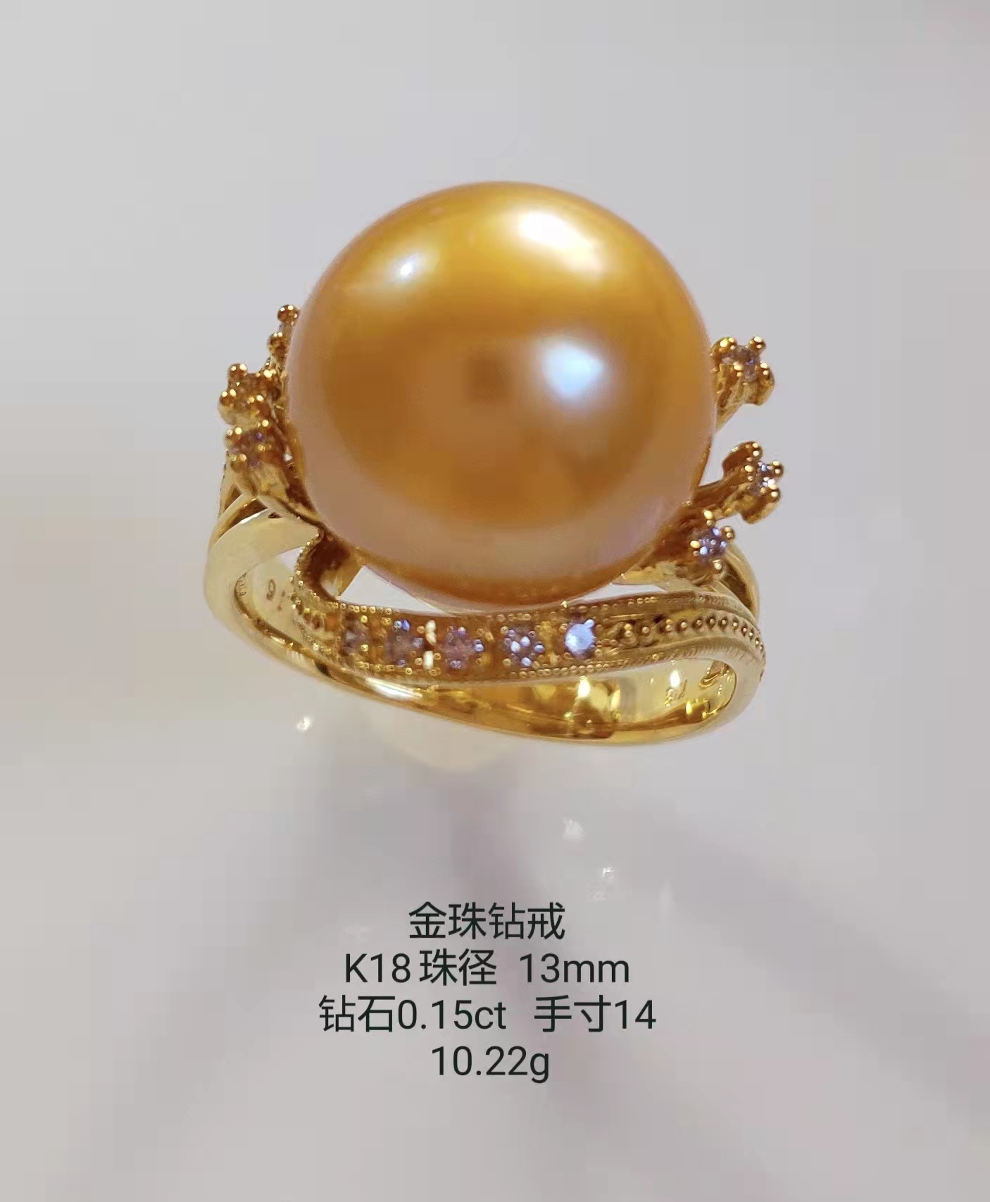20,金珠钻戒    K18    珠径13mm    钻石0.15ct    手寸14    10.22g