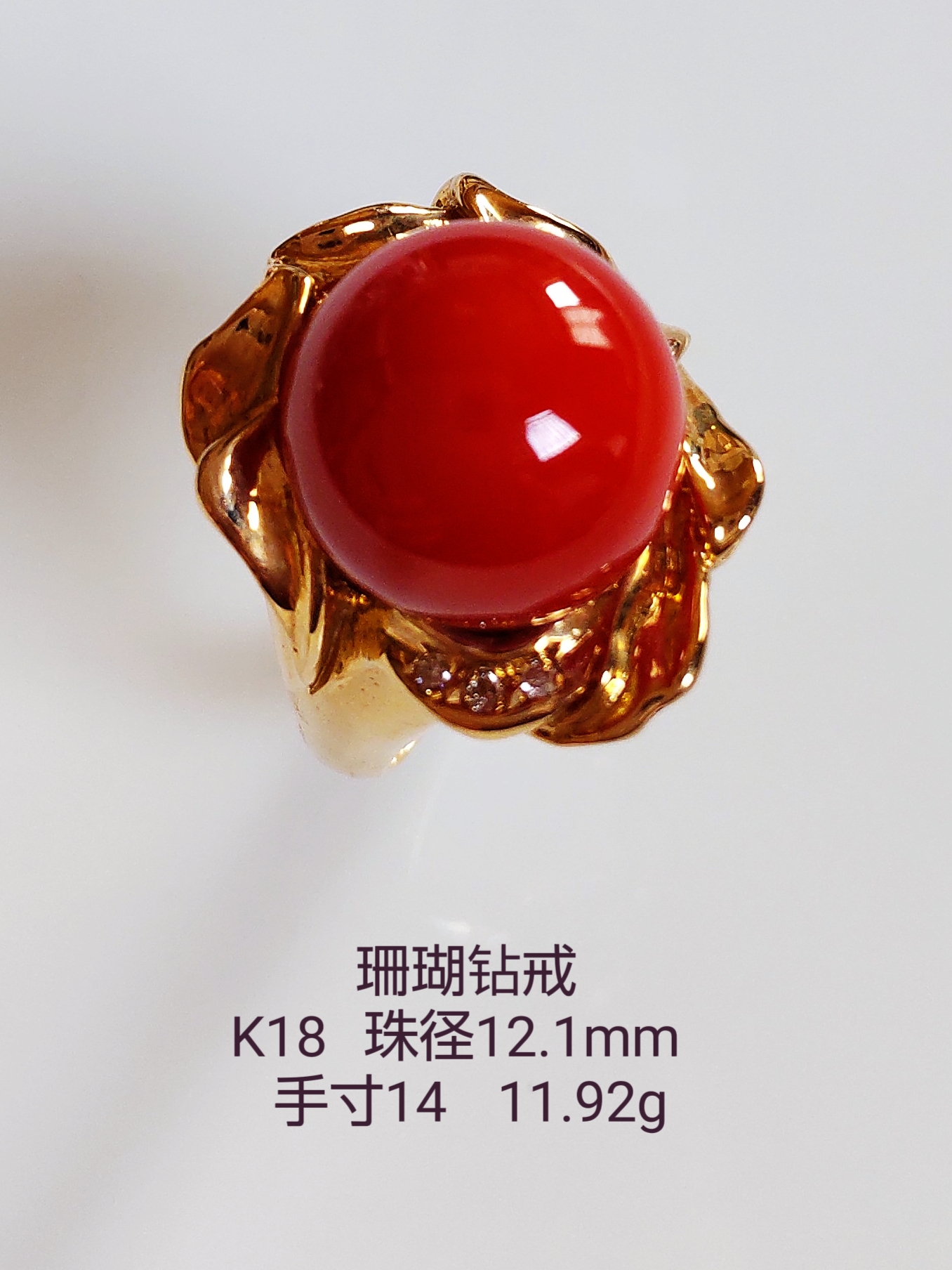 21,珊瑚钻戒   K18   珠径12.1mm     手寸14   11.92g