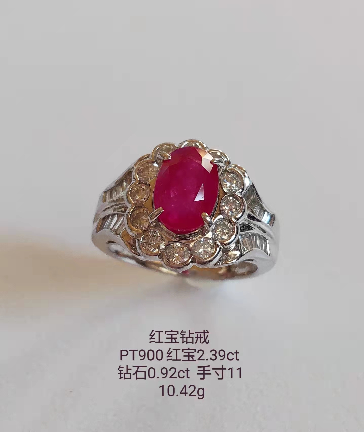22,红宝钻戒    PT900    红宝2.39ct    钻石0.92ct    手寸11    10.42g