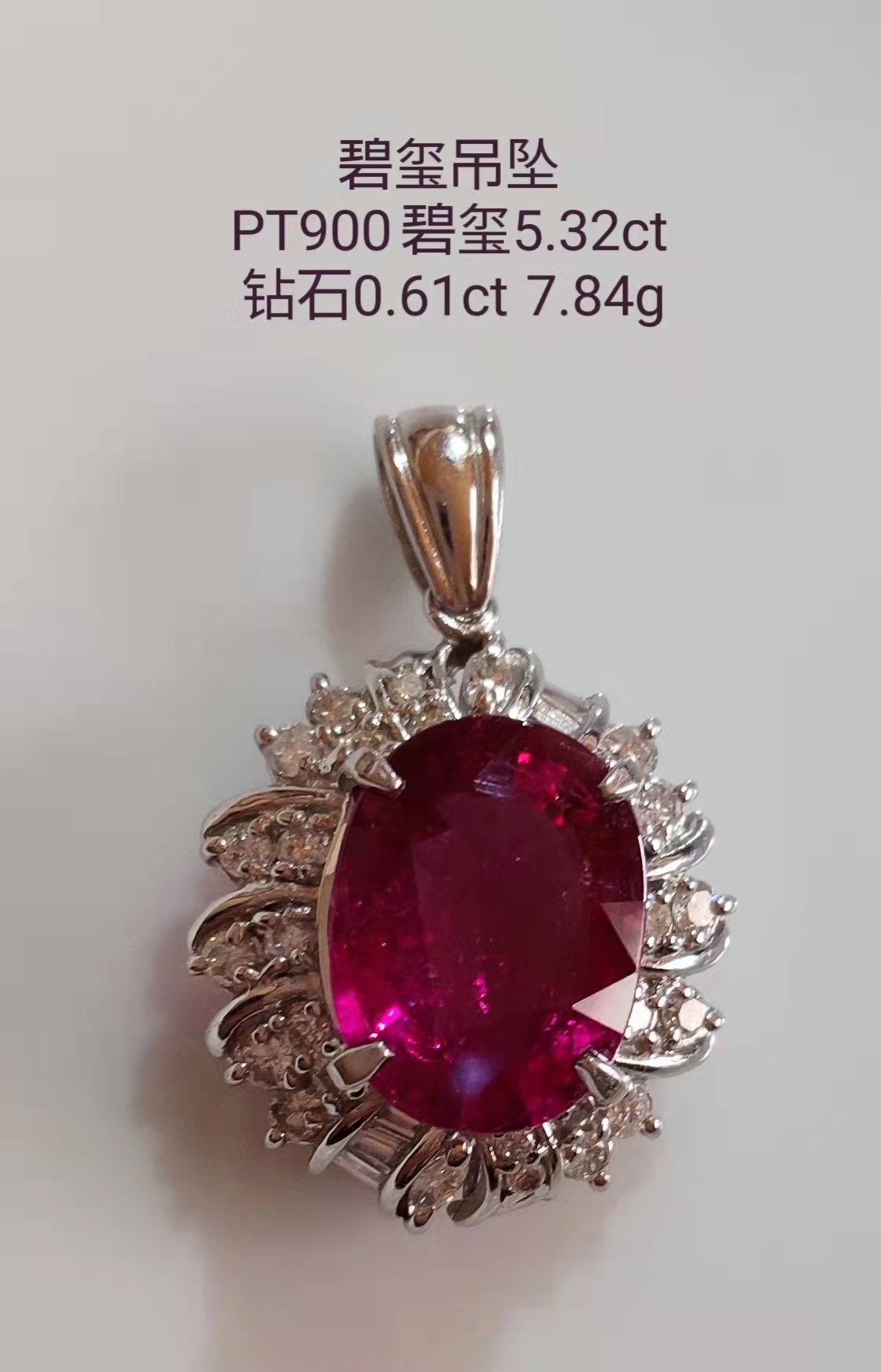 23,碧玺吊坠    PT900    碧玺5.32ct    钻石0.61ct        7.84g