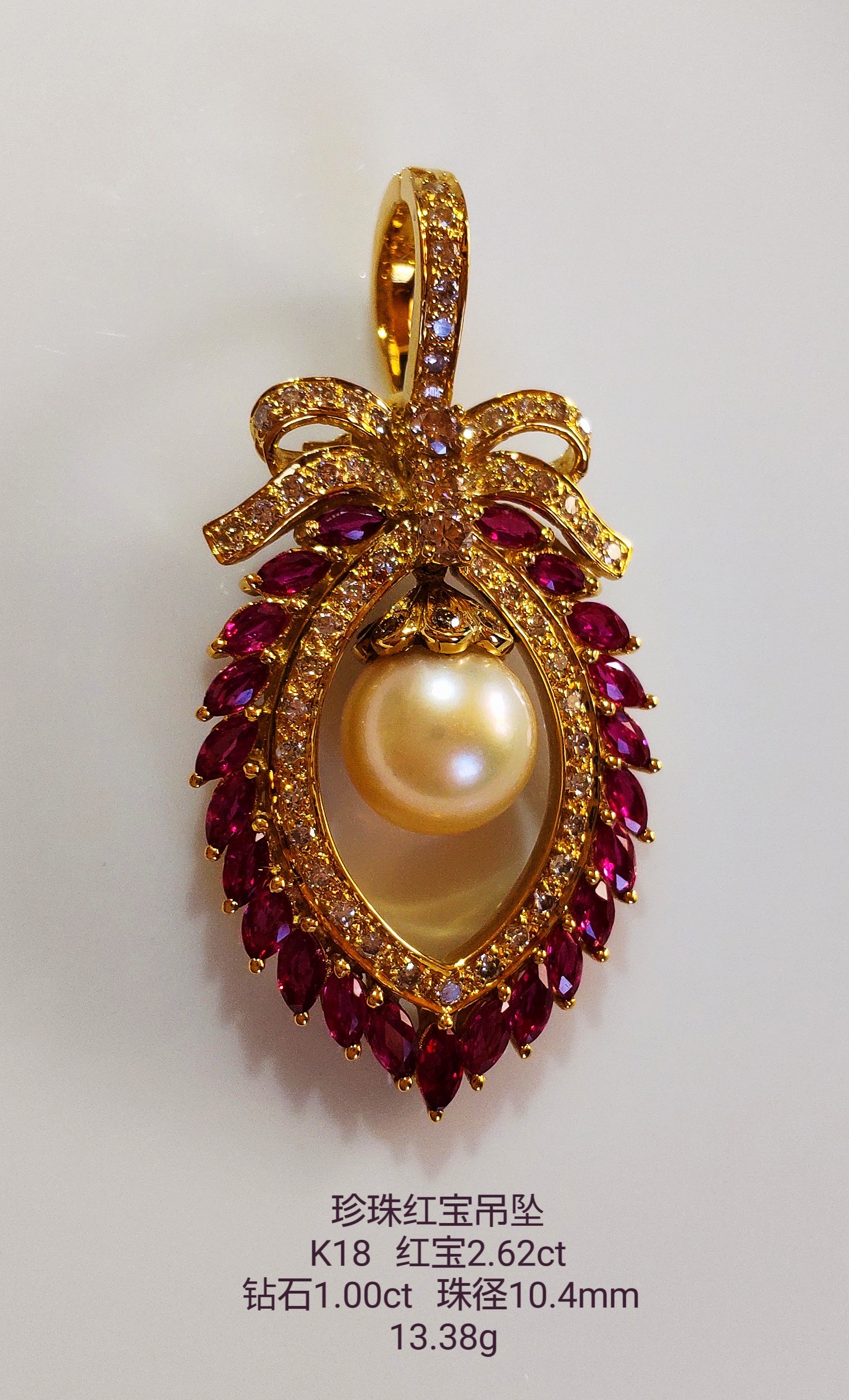 27,珍珠红宝吊坠    K18    红宝2.62ct    钻石1.00ct    珠径10.4mm    13.38g