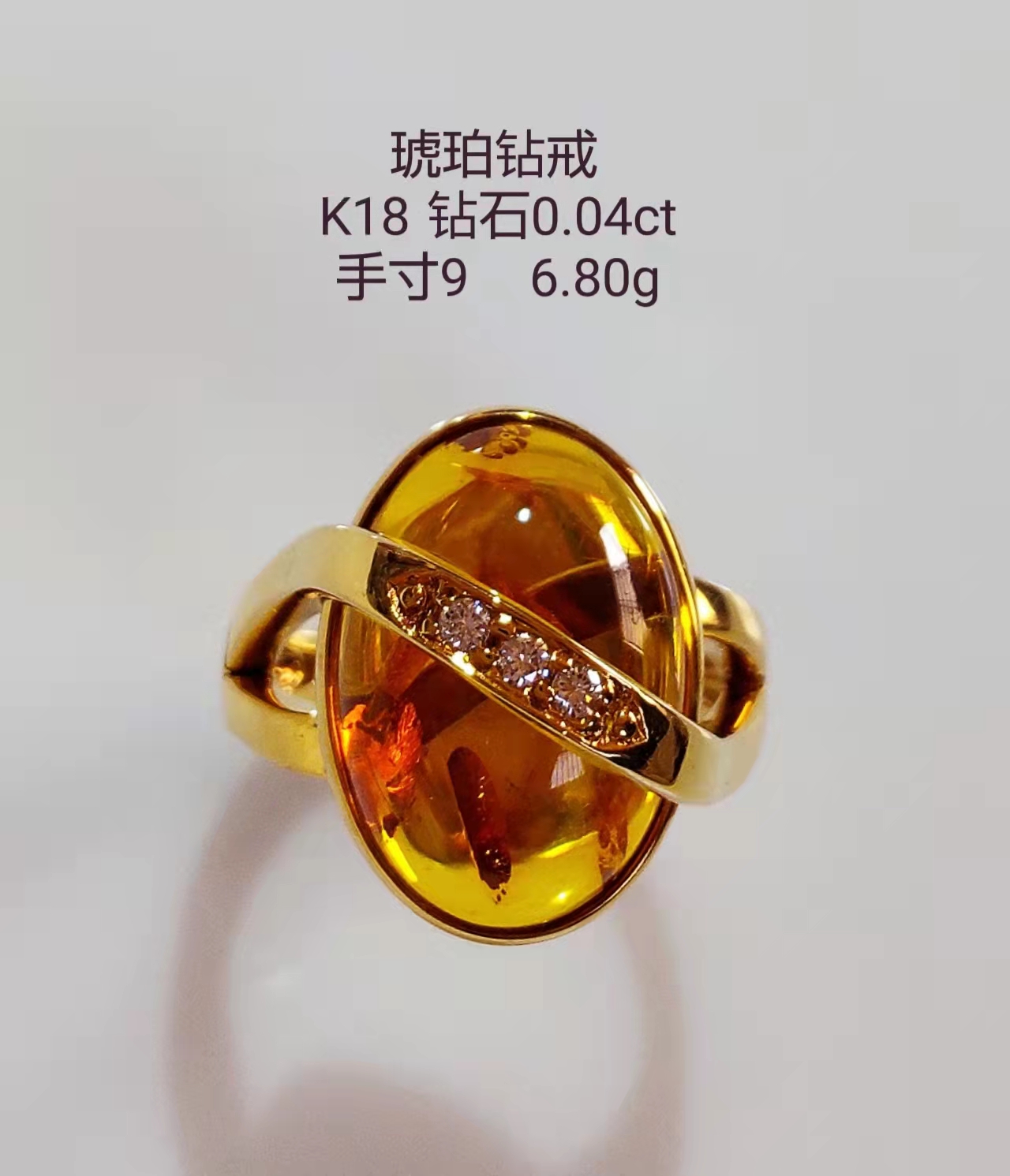 31,琥珀钻戒    K18        钻石0.04ct    手寸9    6.80g