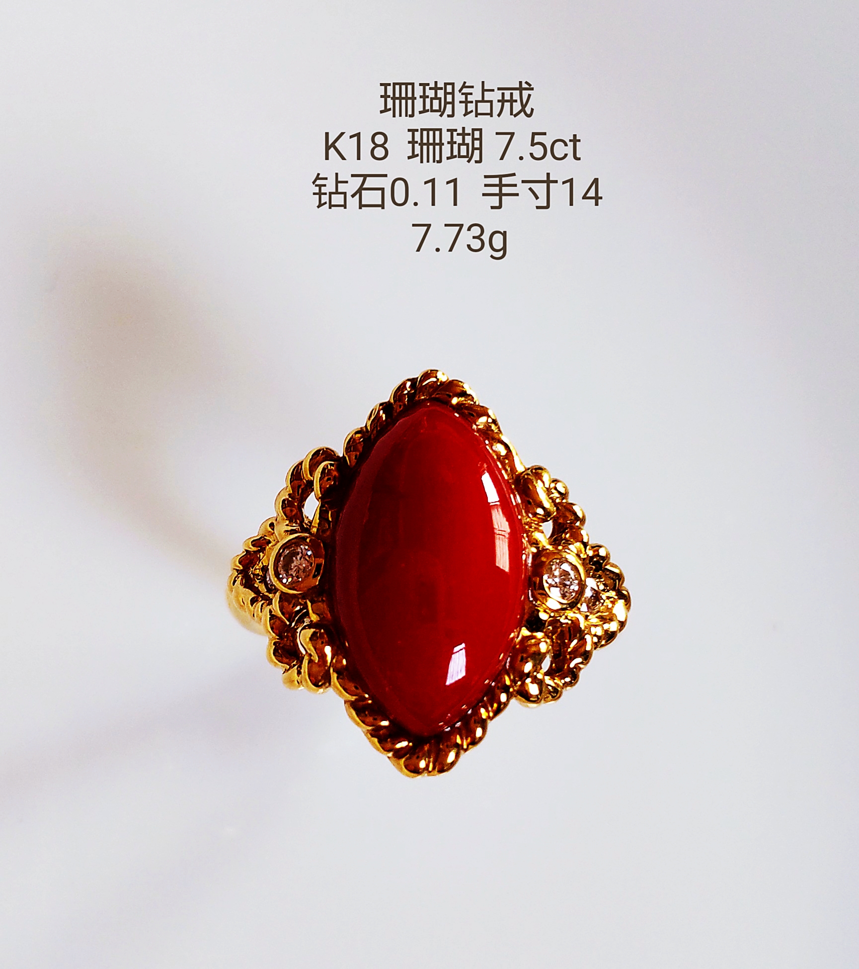33,珊瑚钻戒    K18    珊瑚7.5ct    钻石0.11    手寸14    7.73g