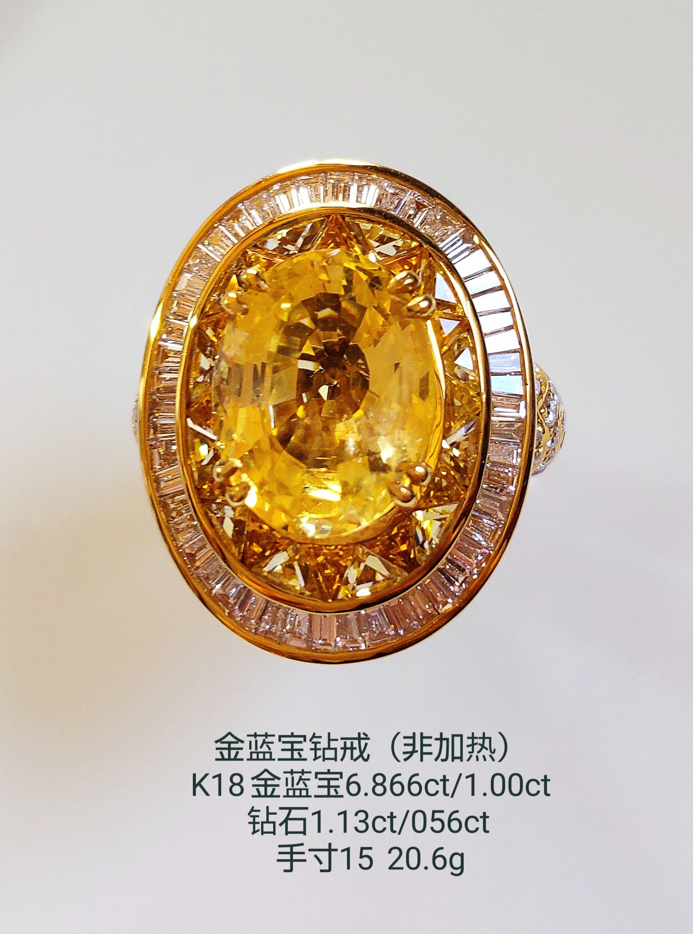 34,金蓝宝钻戒(非加热)    K18    金蓝宝6.866ct/1.00ct    钻石1.13ct/056ct    手寸15    20.6g