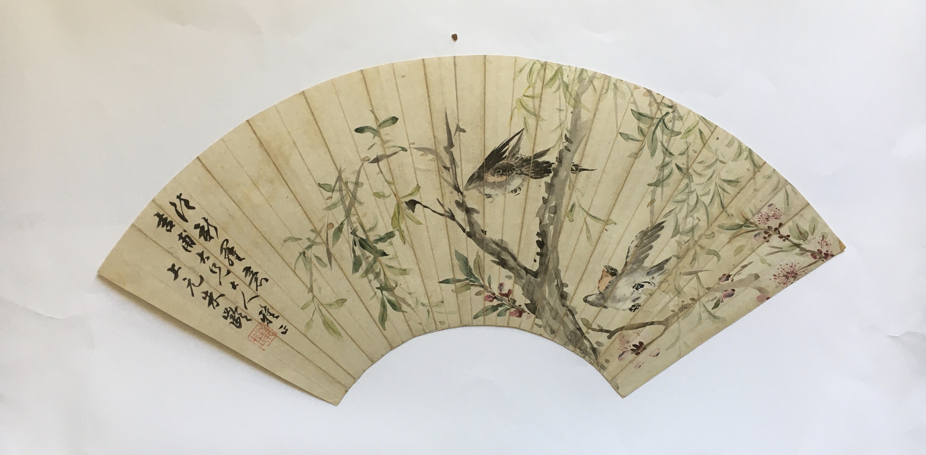 字・子和、江蘇省呉江出身。夏之鼎を師として、花卉等を学び、鮮麗かつ色彩な独自の画風を生み出した。名所垂虹亭畔紅梨花館に住い、各種の花卉の表現が堪能であることから、花鳥の扇面絵は特に著名である。