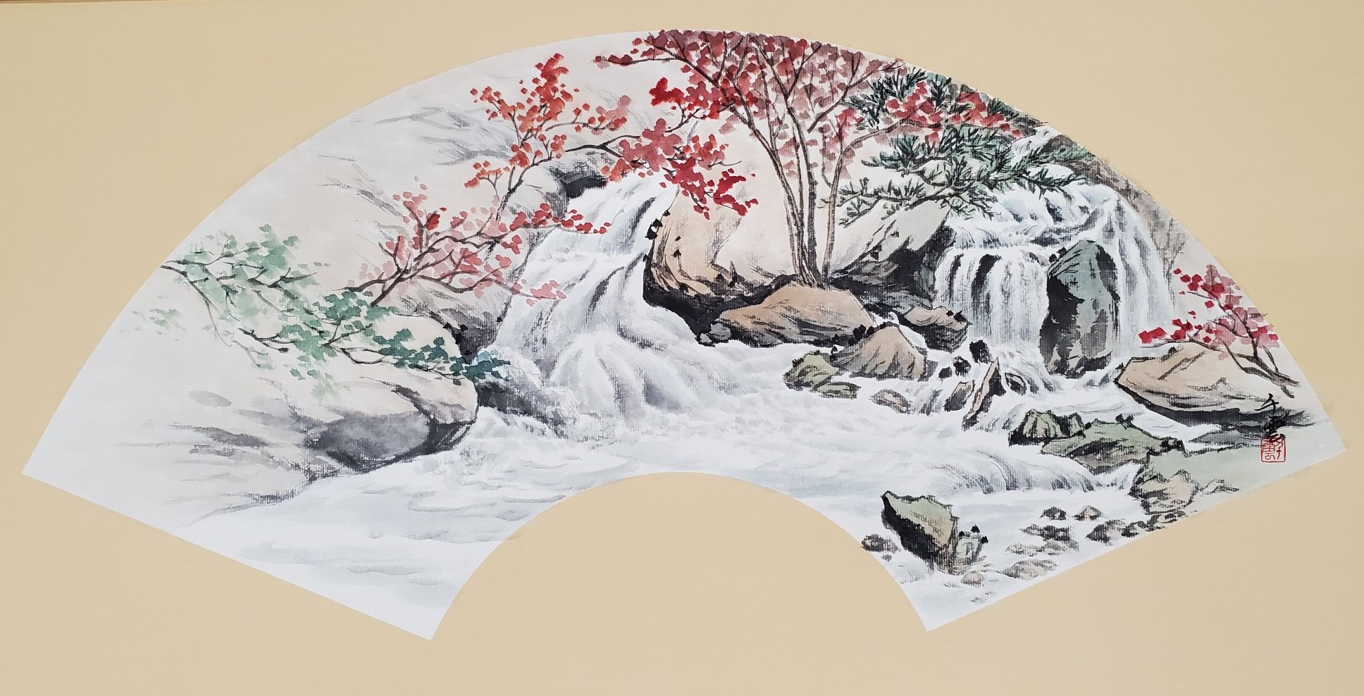 受賞 : 文部大臣賞・外務大臣賞・経済産業大臣賞・東京都知事賞他多数。扇面画題「竜頭の滝」など