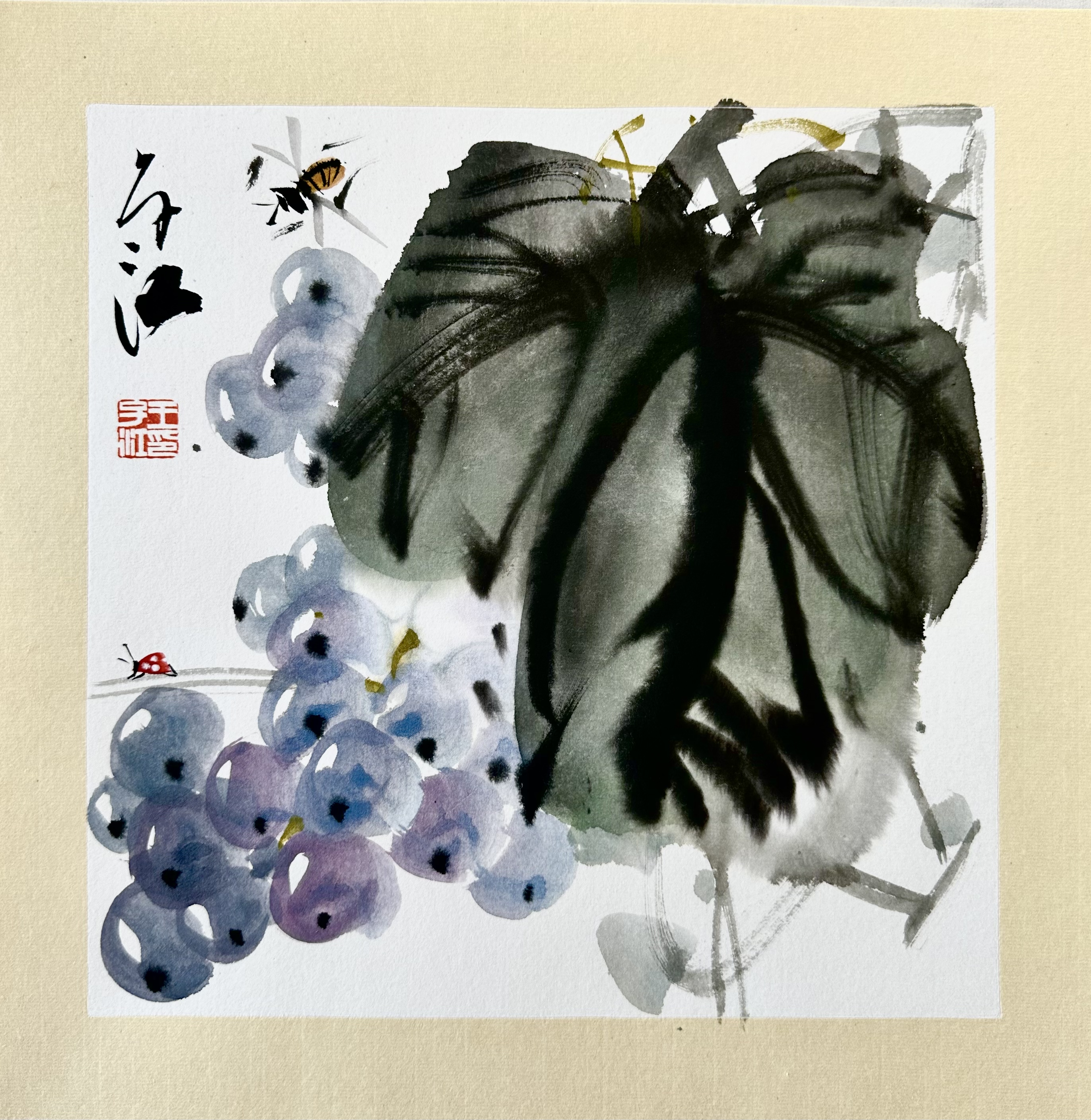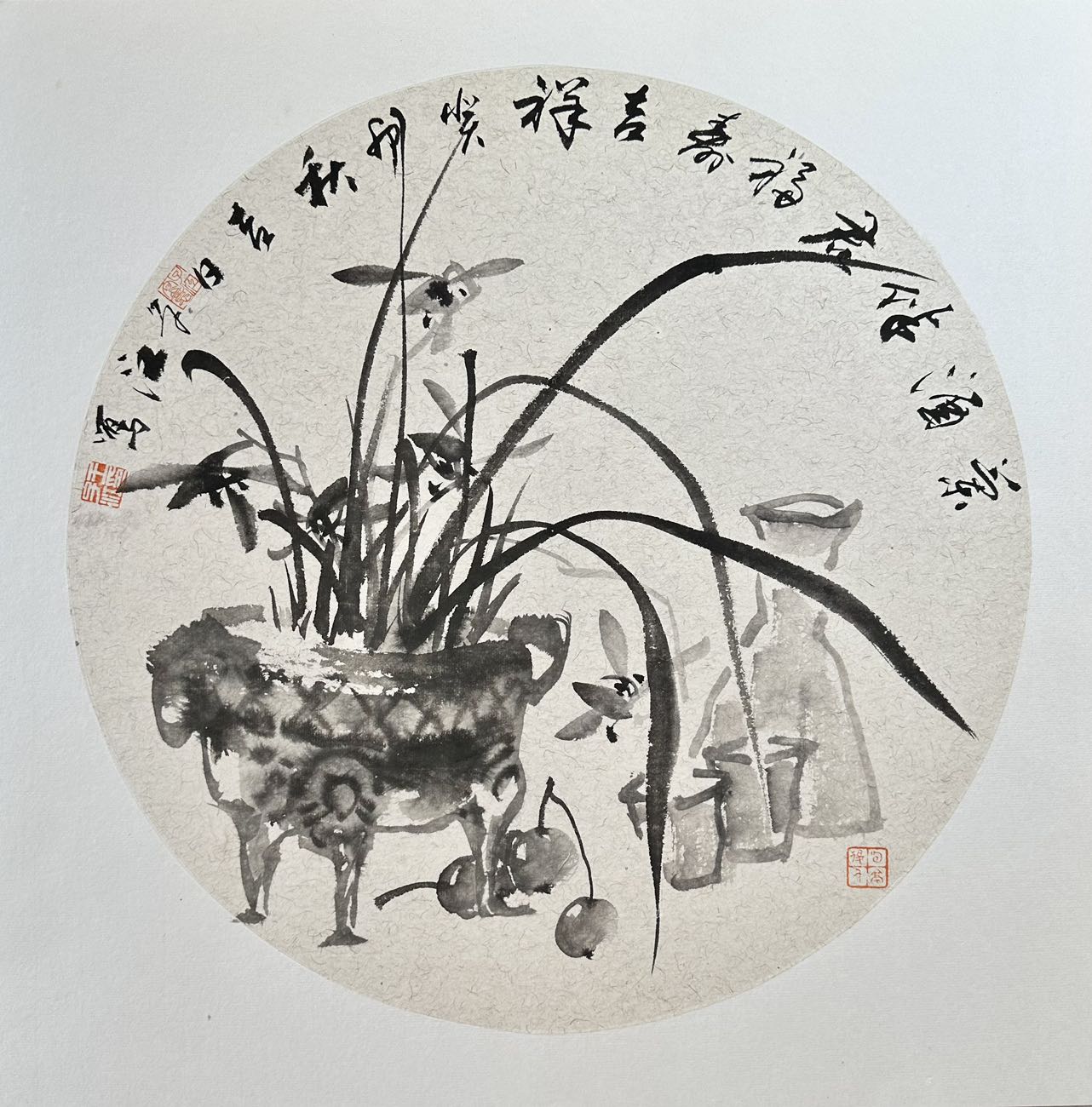 29)《蘭酒伴君·福壽吉祥》》(50 x 50 cm)墨彩画